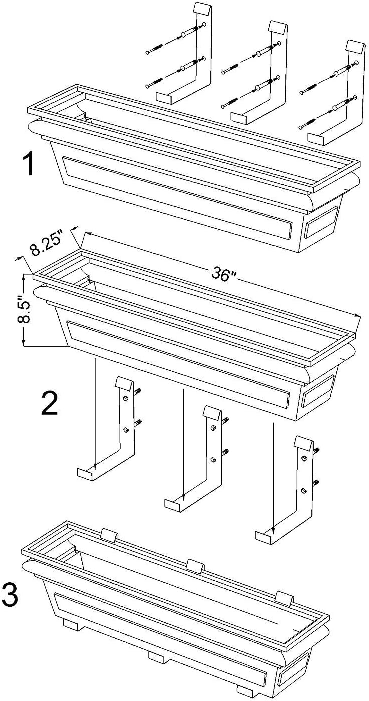 - 36 inch length for flower and plant display β The H Potter Williamsburg window box is the perfect display for your favorite plants. The wide mouth provides plenty of space for a number of different plants to adorn the outside of your home. Place the window box in the most visible spot around the house using the sturdy and lightweight mounting brackets that are easy to install and remove for planting and care