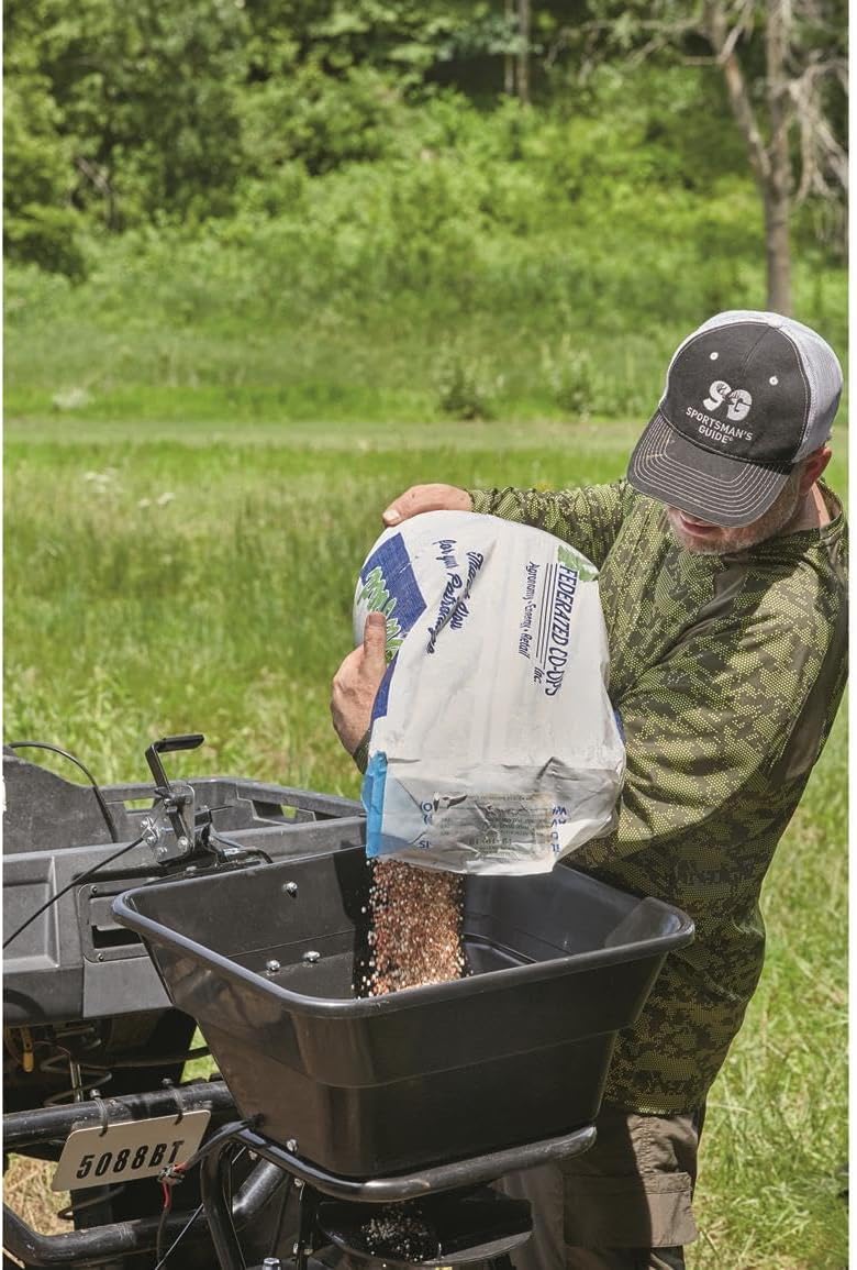 - SEAD-SPREADING POWERHOUSE – Expertly constructed for outstanding durability, this ATV broadcast sprayer with a 12V motor has a rustproof polyethylene hopper for long life.
