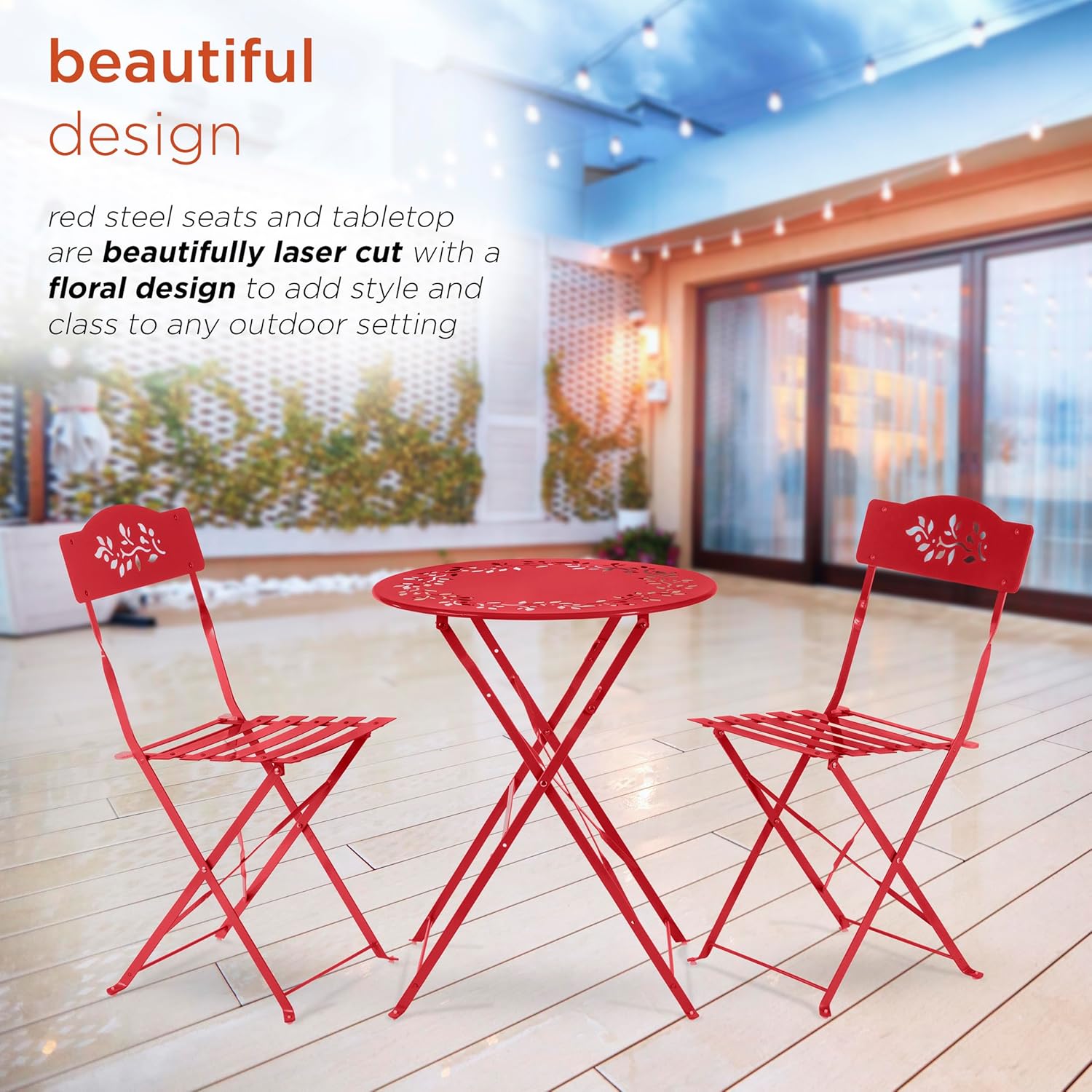 - PATIO SEATING SET: Bright, vibrant colored steel 3 piece bistro set featuring 2 folding chairs and table, and provides a pop of color to your indoor or outdoor living space or patio