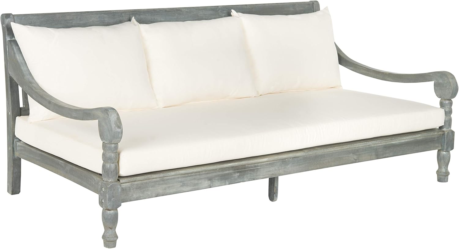 Safavieh Outdoor Collection Pasadena Ash Grey/ Beige Acacia Wood Cushioned Daybed