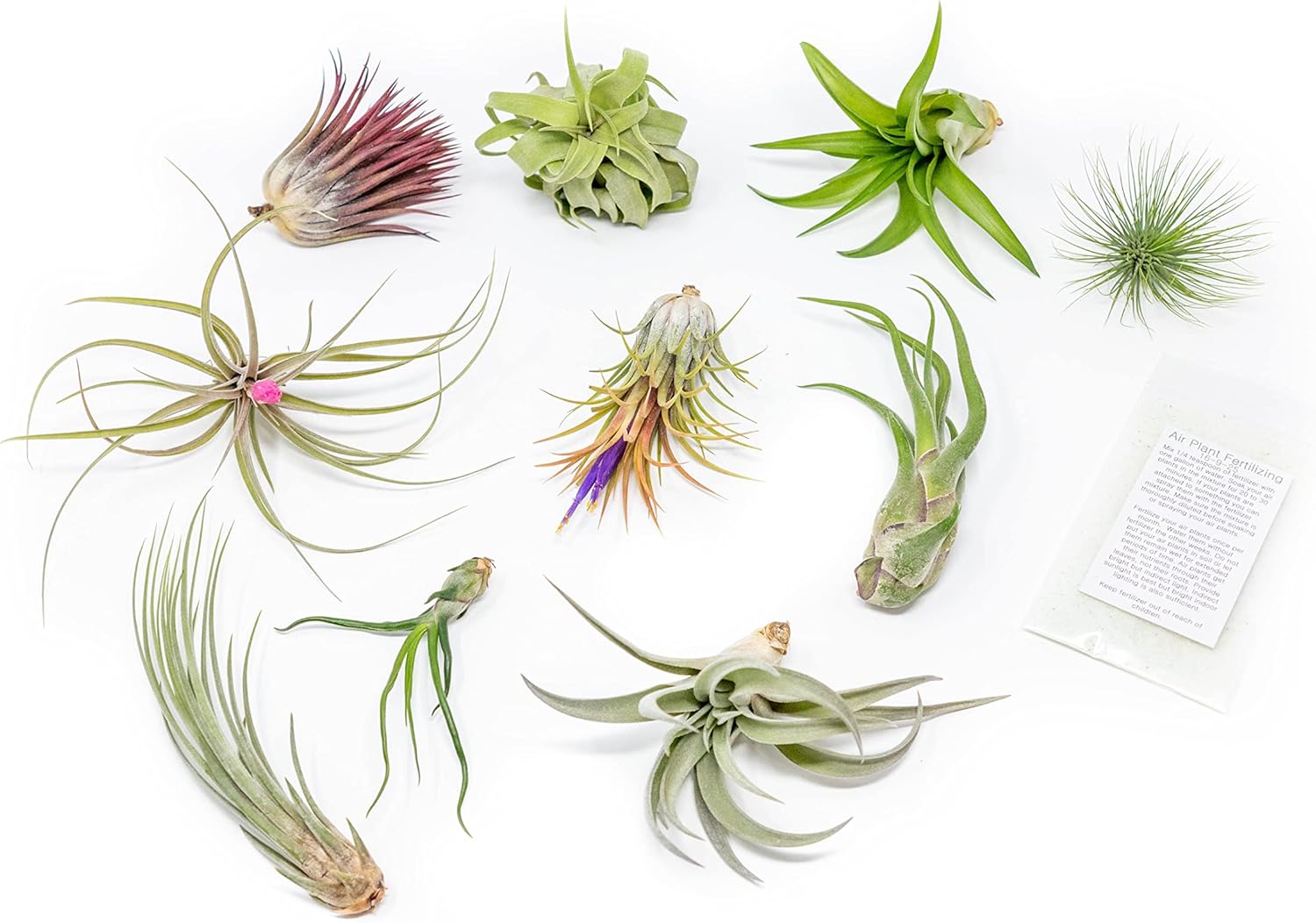 Grab Bag Pack Small & Medium Air Plants - Fertilizer Packet - Wholesale - Bulk - Live Tillandsia - Easy Care House Plant - Succulents, 10 Count (Pack of 1)