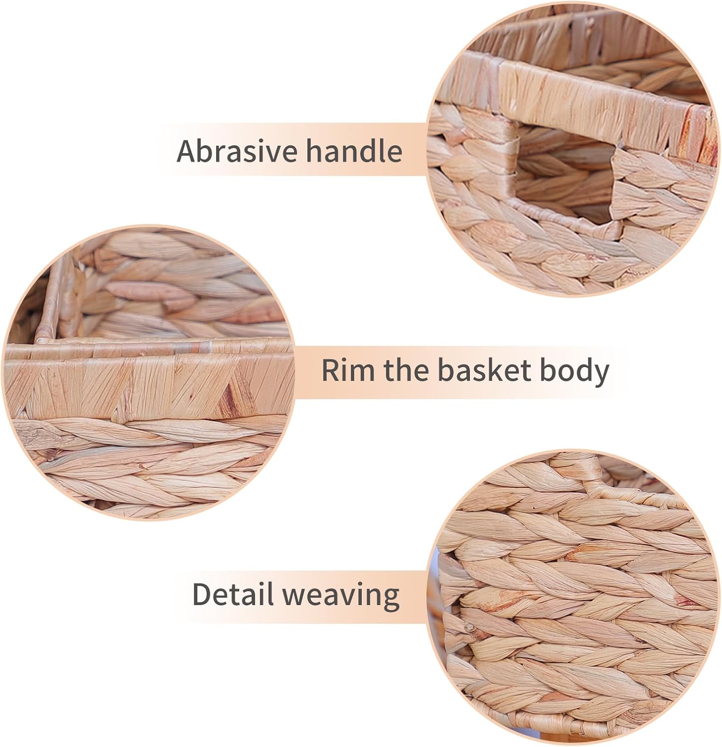 - Set of 3 baskets measuring 12.2"Lx7.68"Wx6.10"H(small), 13.78"Lx9.45"Wx7.09"H (medium) and 15.10"Lx11.02"Wx7.87"H (large) . Please note that these products are handmade and the sizes may vary ±1 inch.