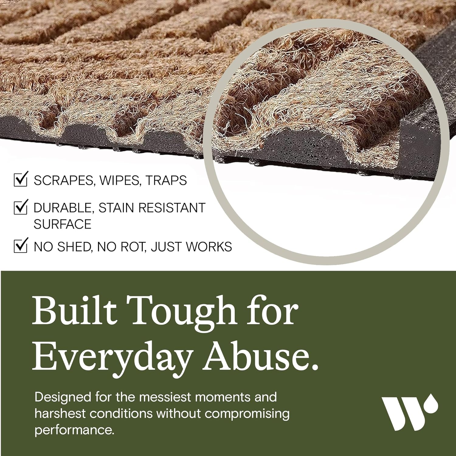 - EASY CARE AND MAINTENANCE: This heavy-duty entry mat requires minimal upkeep—just shake, vacuum, or scrub off debris, rinse with a hose, and let it air dry. Built to endure, its durable design makes it a long-lasting, all-weather door mat for your home.