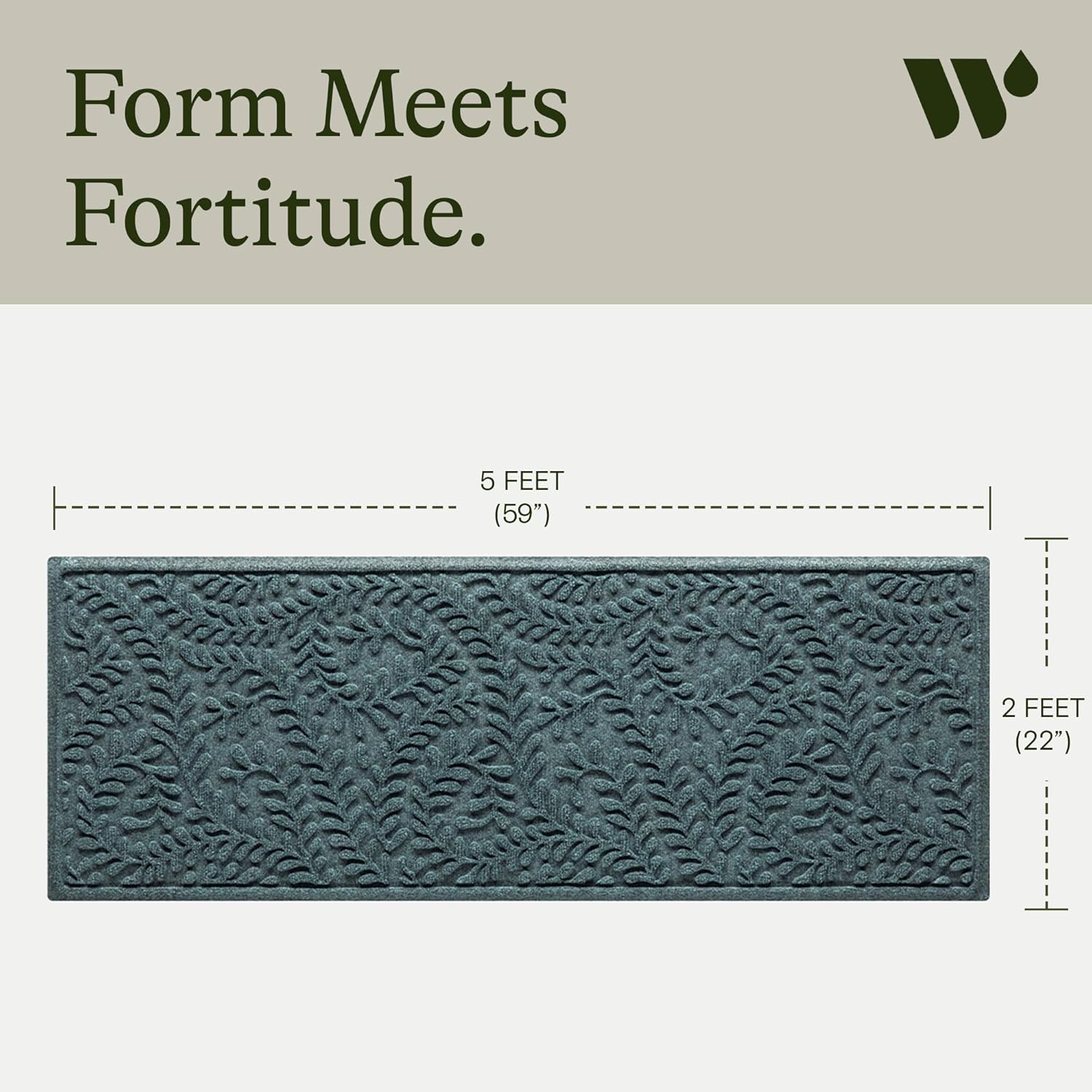 WaterHog Indoor/Outdoor Door Mat, 2' x 5', Made in USA, Durable & Skid-Resistant Front Door Rug, Decorative, Water-Trapping & Heavy-Duty Entryway Floor Mat For Your Home, Boxwood Collection, Bluestone
