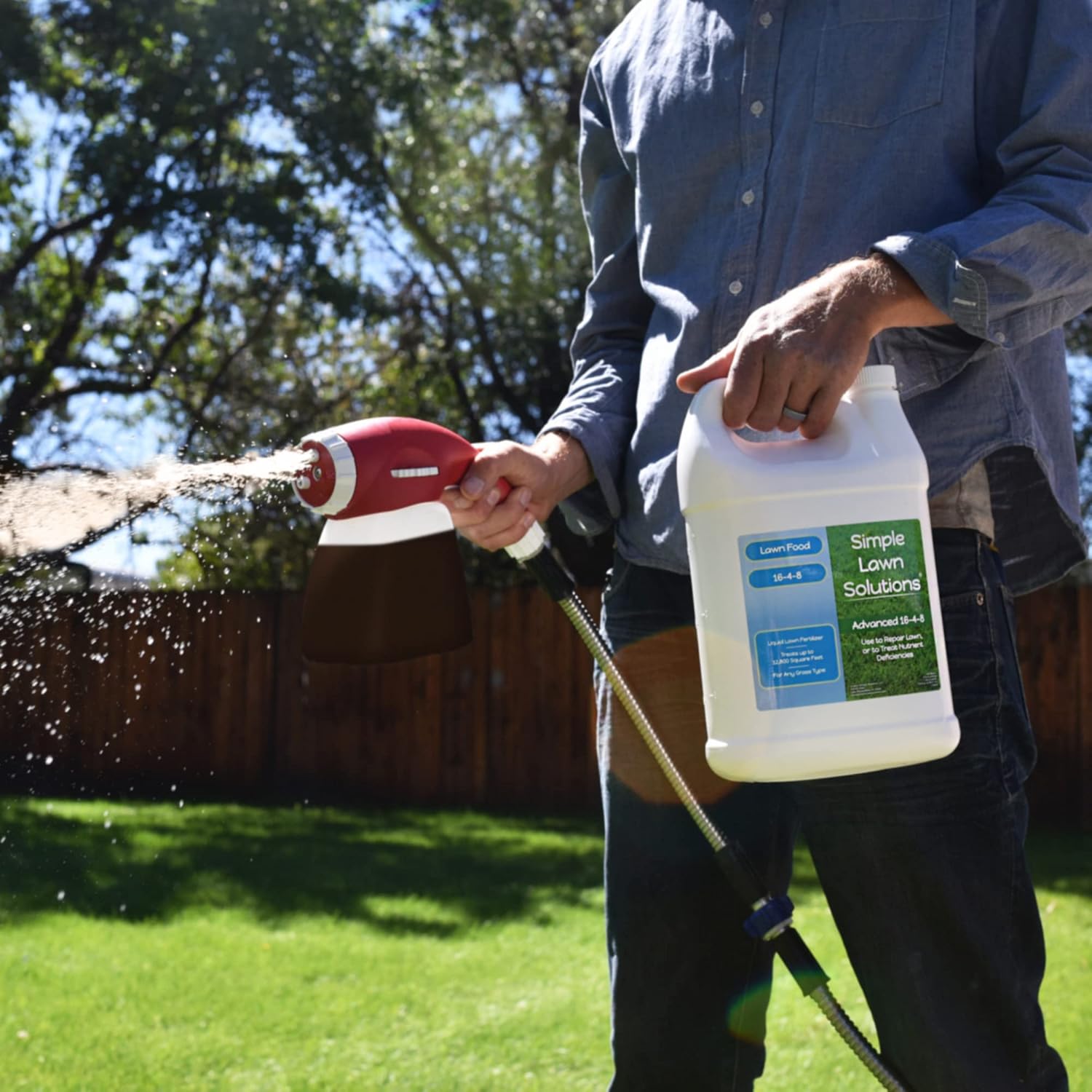 Advanced 16-4-8 Lawn Fertilizer - Liquid Lawn Food Spring & Summer Concentrated Spray - Any Grass Type- Fish and Seaweed Kelp- Balanced NPK - Simple Lawn Solutions (1 Gallon)