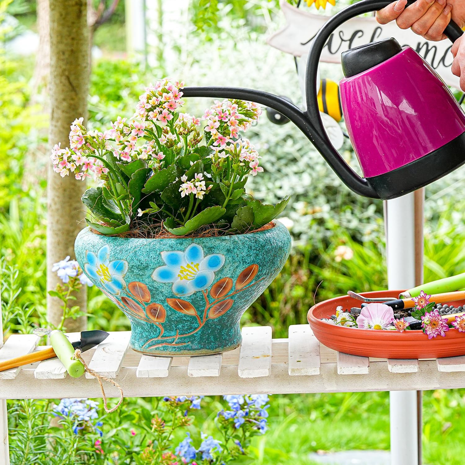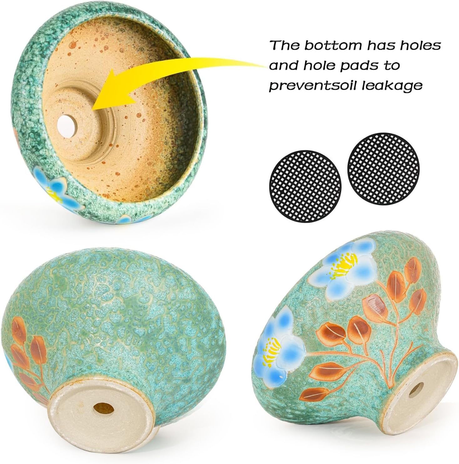 - Handicrafts: This set of beautifully design ceramic succulent pots are handcrafted, beautiful vibrant colors with hand painted flower. The subtle variations in the glaze add character, great artistry and attractive.