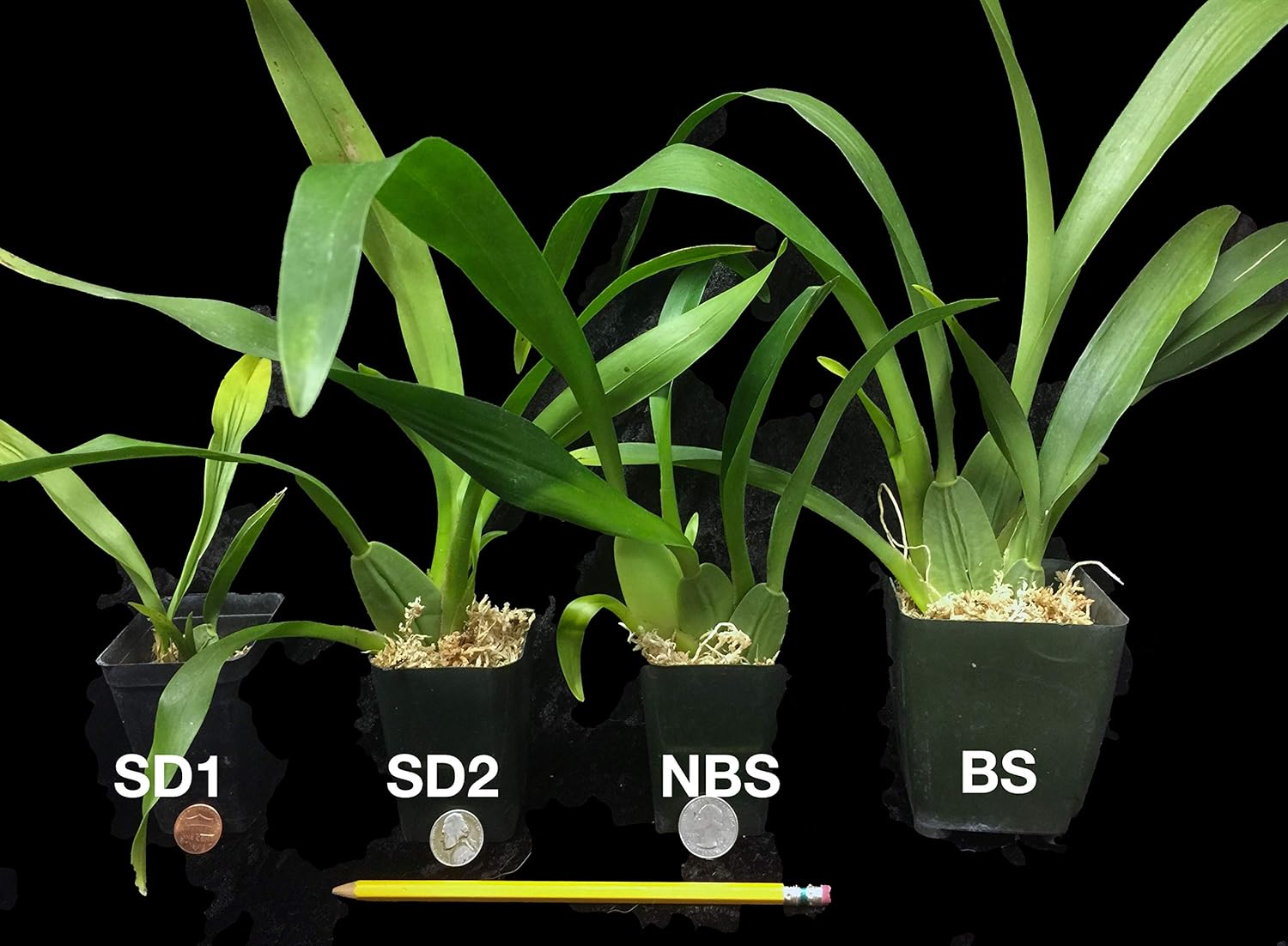- Please look carefully at photos to get an idea of size! There’s a pen or coin in each pic as a size reference. Photo is representative of plant you will receive. Sizes offered are SD1 (with one bulb), SD2 (with two bulbs or more), NBS (Near Blooming Size, 6 – 12 months from Blooming Size), and BS (Blooming Size, in 3.25" square pots, capable of blooming any time). Plants potted up in New Zealand Sphagnum Moss or pine bark. Important Note: plants are not in-bud/bloom when shipped.