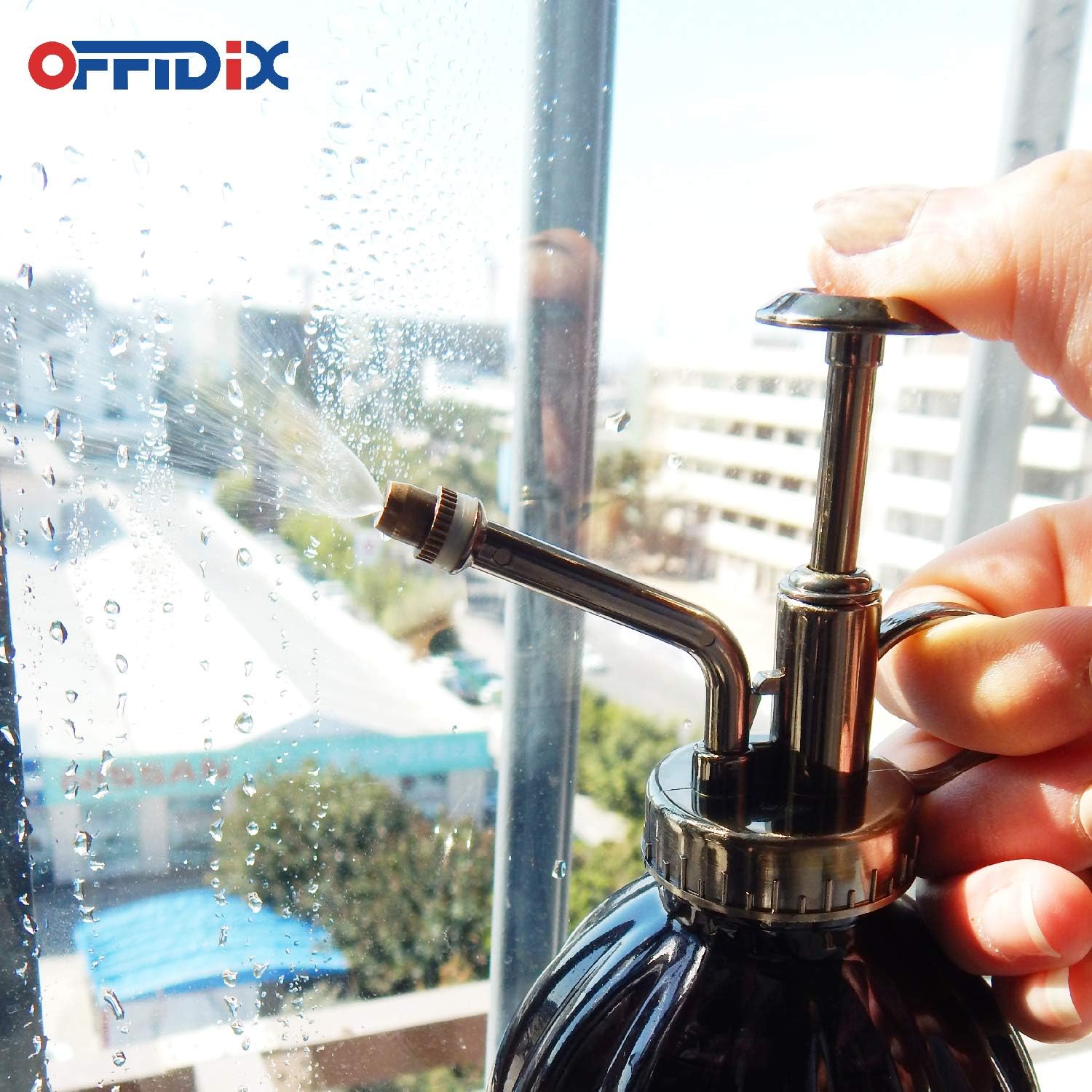 OFFIDIX Plant Mister Flower Watering Can, 6.3" Tall Vintage Pumpkin Style Black Color Glass Spray Bottle & Bronze Plastic Top Pump Ideal for Watering Small Plants Inside Home or Office