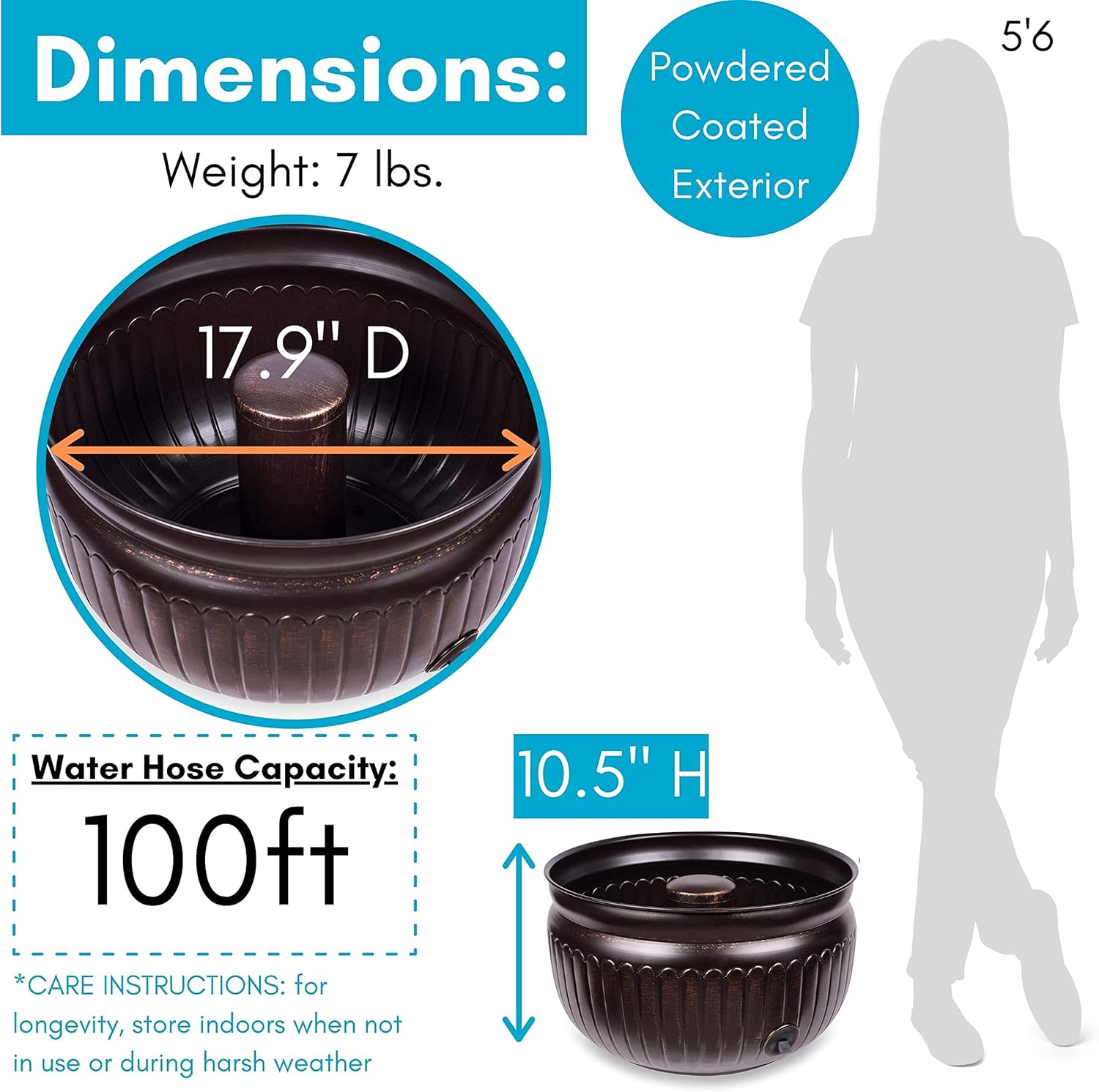 - VERSATILE INDOOR AND OUTDOOR USE: Ideal for holding up to 100 ft of water hose, this pot also doubles as storage for household items like magazines, plants, blankets, or firewood. Weighs 7 lbs.