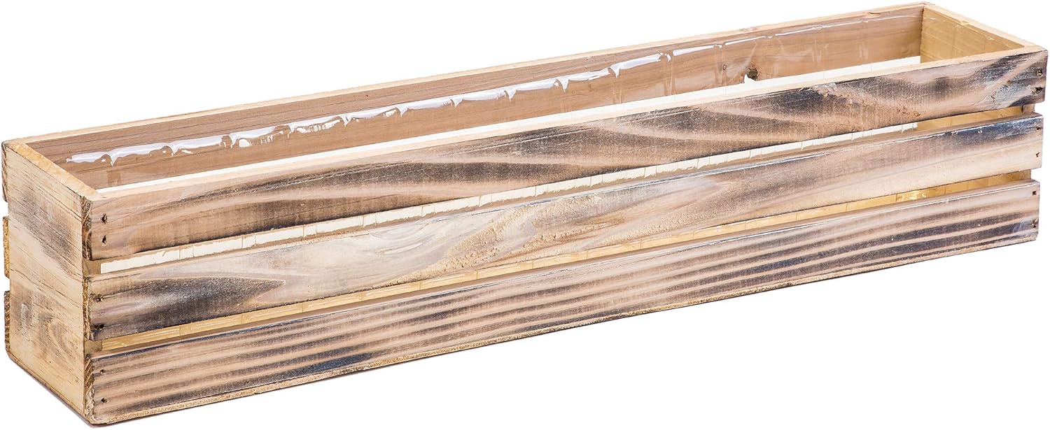 20" Rectangular Rustic Wood Planter with Plastic Liner l Rustic Whitewash l Wine Crate Style, Home and Wedding Decorations, Garden Ornaments (20x4 Wine Crate Set of 2, Whitewash)