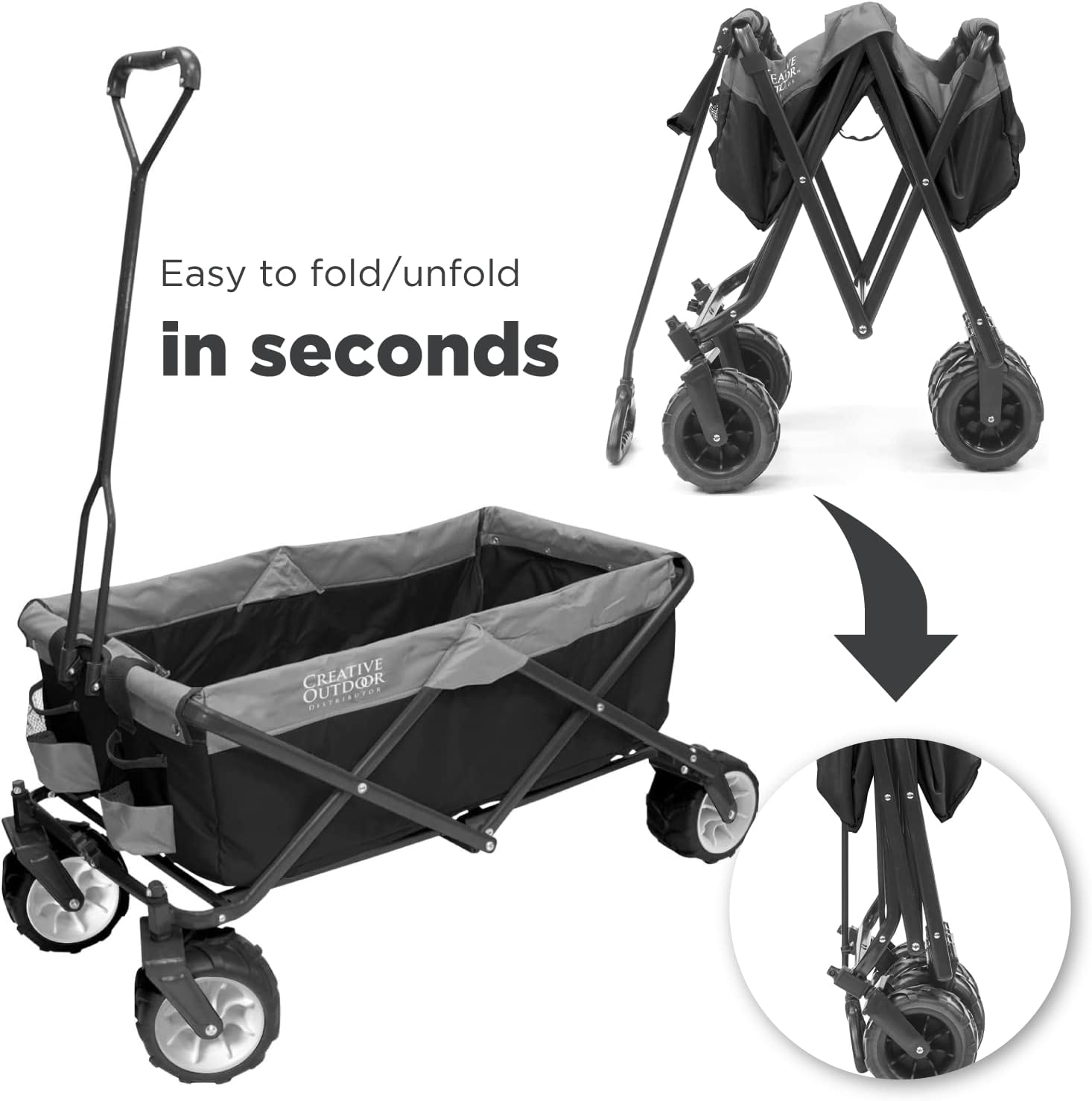 Creative Outdoor Push Pull Hauler Wagon for Kids, 200lbs Weight Capacity, All-Terrain Collapsible and Portable Folding Cart, Beach, Park, Garden, Camping & Tailgate