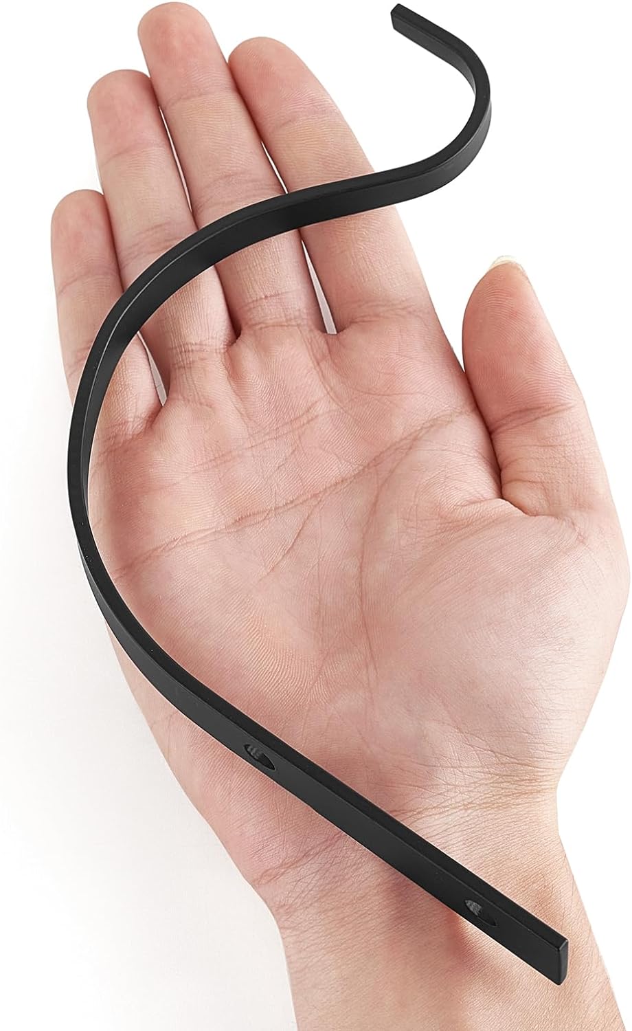 - Solid Construction Material- iron in good craftsmanship, a dark finish stunningly complements anything that hangs from it it will not rust, or melt under heat. There are 4 in a package, including screws.