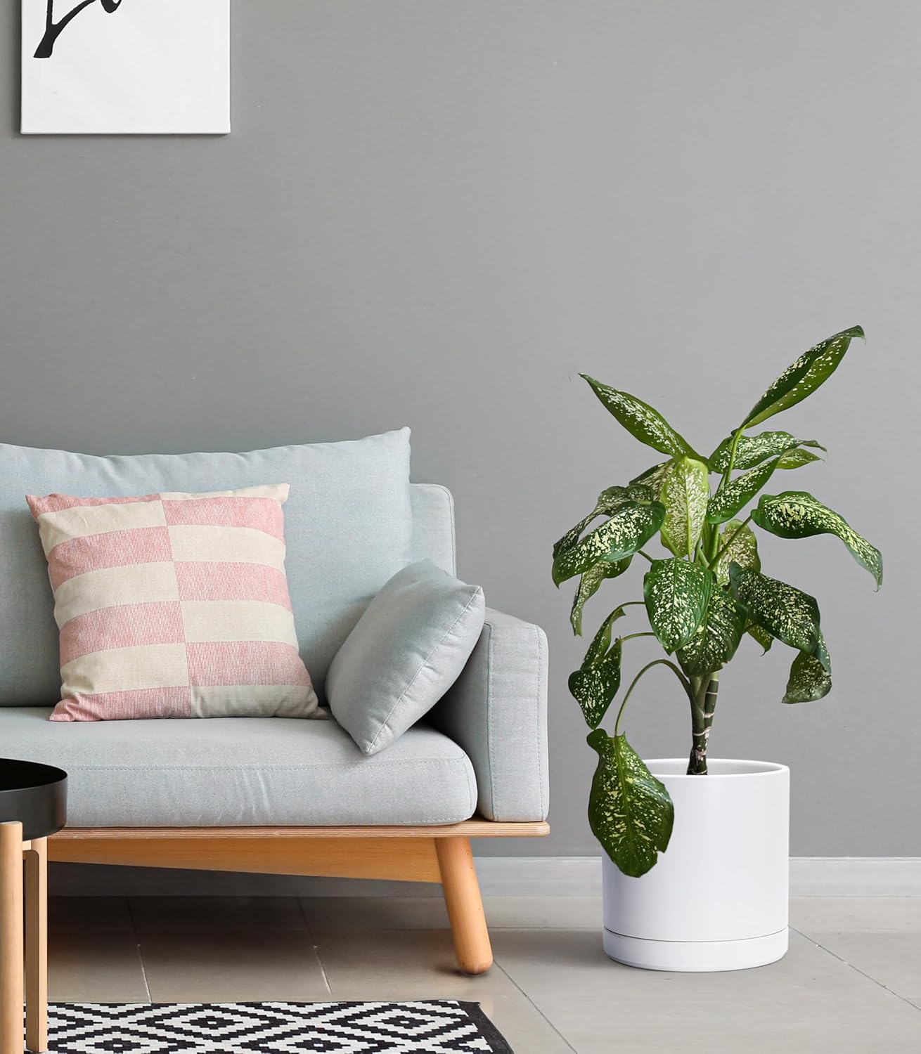 - Simple, elegant, and modern cylindrical straight round planter pot with saucer and drainage hole.