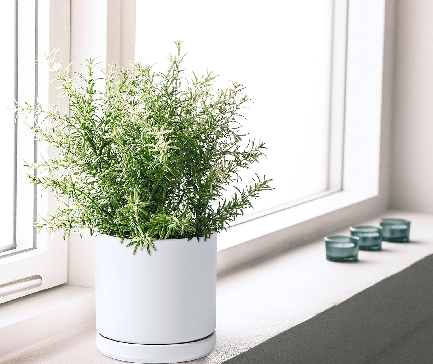 D'vine Dev 6 Inch & 8 Inch Ceramic Planter Pots for Plants with Drainage Hole and Saucer, Medium Plant Pots Set, White, 94-G-M-1