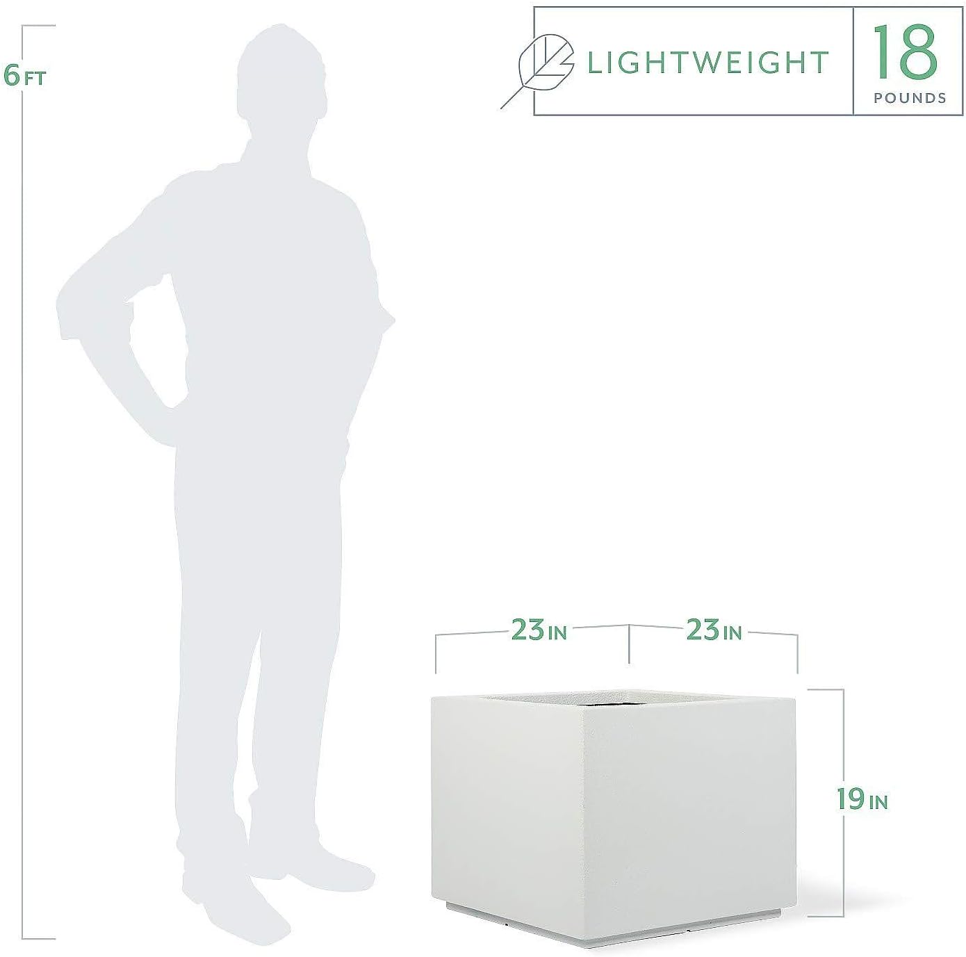 - FEATURES/DIMENSIONS: 23"L x 23"W x 19"H tall planter equipped with drainage holes and exit channels. Suitable for indoor or outdoor use. Due to pre-drilled drainage holes, faux plants are recommended for indoor use.