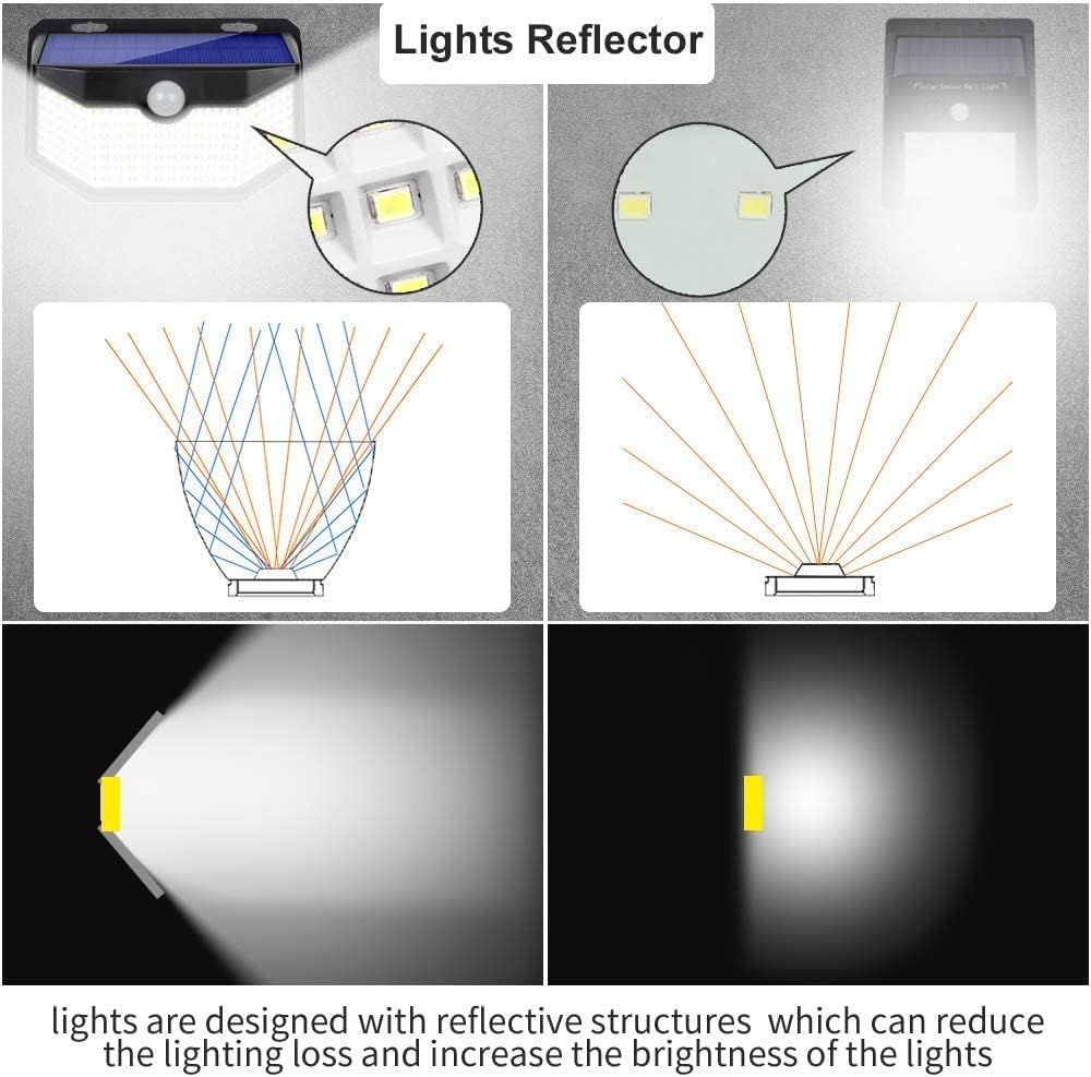 HMCITY Solar Lights Outdoor 120 LED with Lights Reflector and 3 Lighting Modes, Motion Sensor Wall Lights,IP65 Waterproof Solar Powered for Garden Patio Yard (Back Button 2Packs, Daylight White)