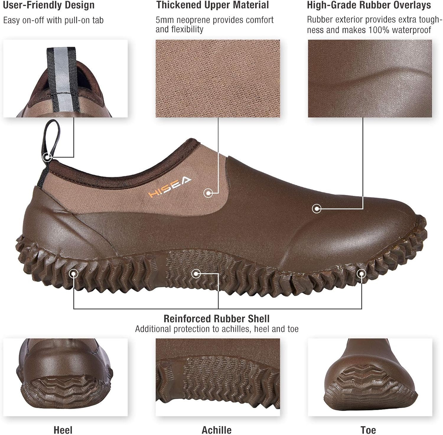 HISEA Unisex Waterproof Garden Shoes, Men's Rubber Rain Boots Women's Ankle Rain Shoes Neoprene Camp Booties Outdoor Slip-On Footwear for Gardening, Farming, Camping, Car Wash, Lawn Care and Yard Work
