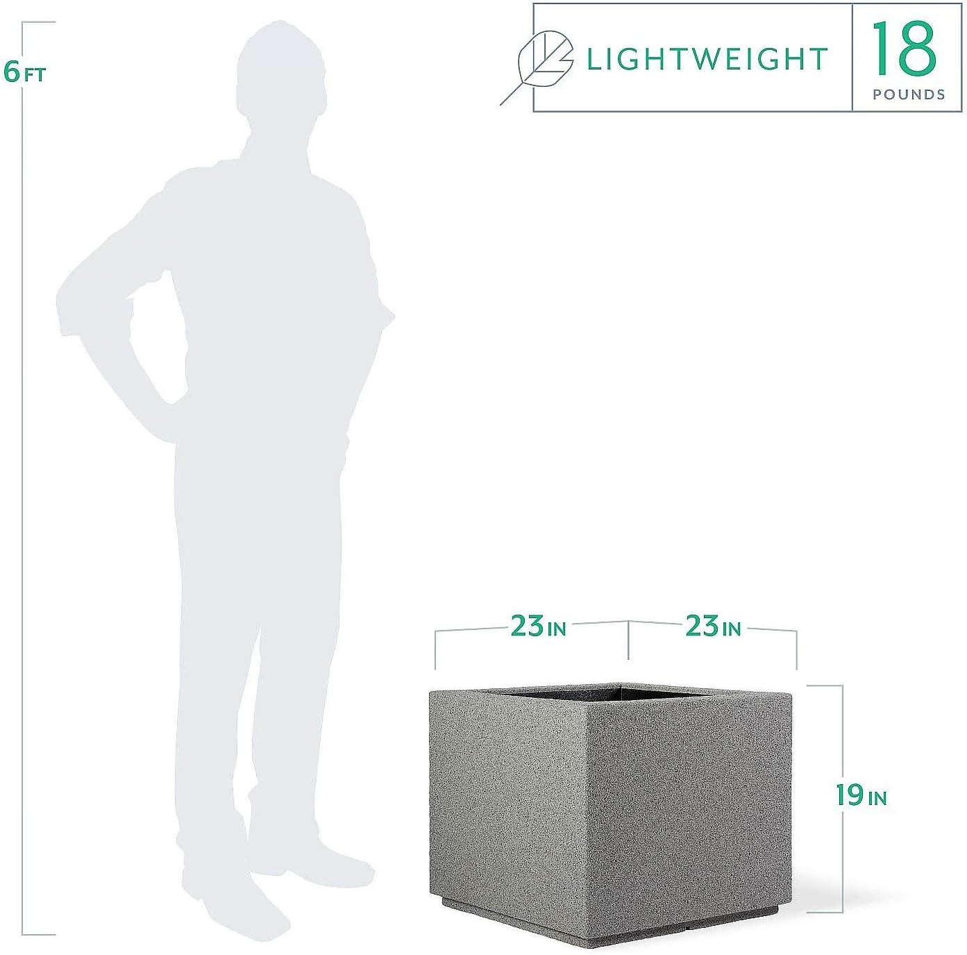 - FEATURES/DIMENSIONS: 23"L x 23"W x 19"H tall planter equipped with drainage holes and exit channels. Suitable for indoor or outdoor use. Due to pre-drilled drainage holes, faux plants are recommended for indoor use.