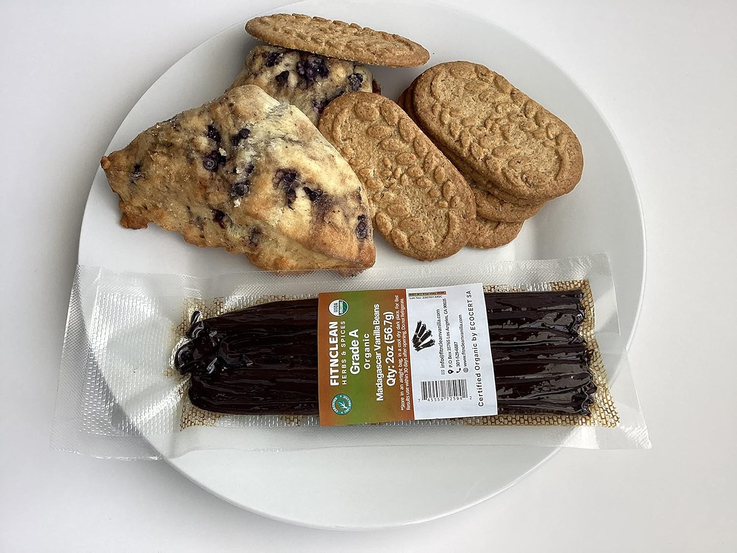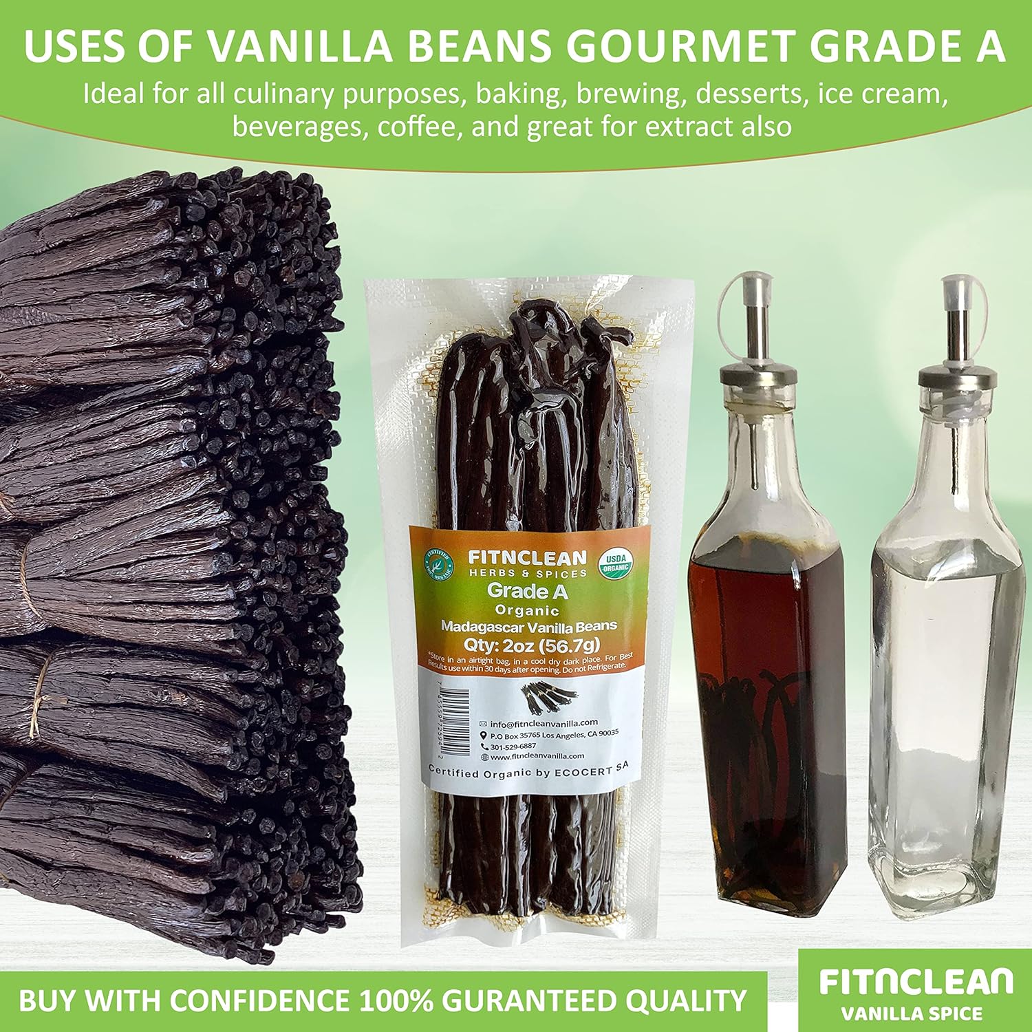 2oz Madagascar Organic Vanilla Beans Gourmet Grade A. Certified USDA Organic 6"-8" by FITNCLEAN VANILLA Bourbon Fresh for Extract, Essence, Brewing, Baking NON-GMO Whole Pods