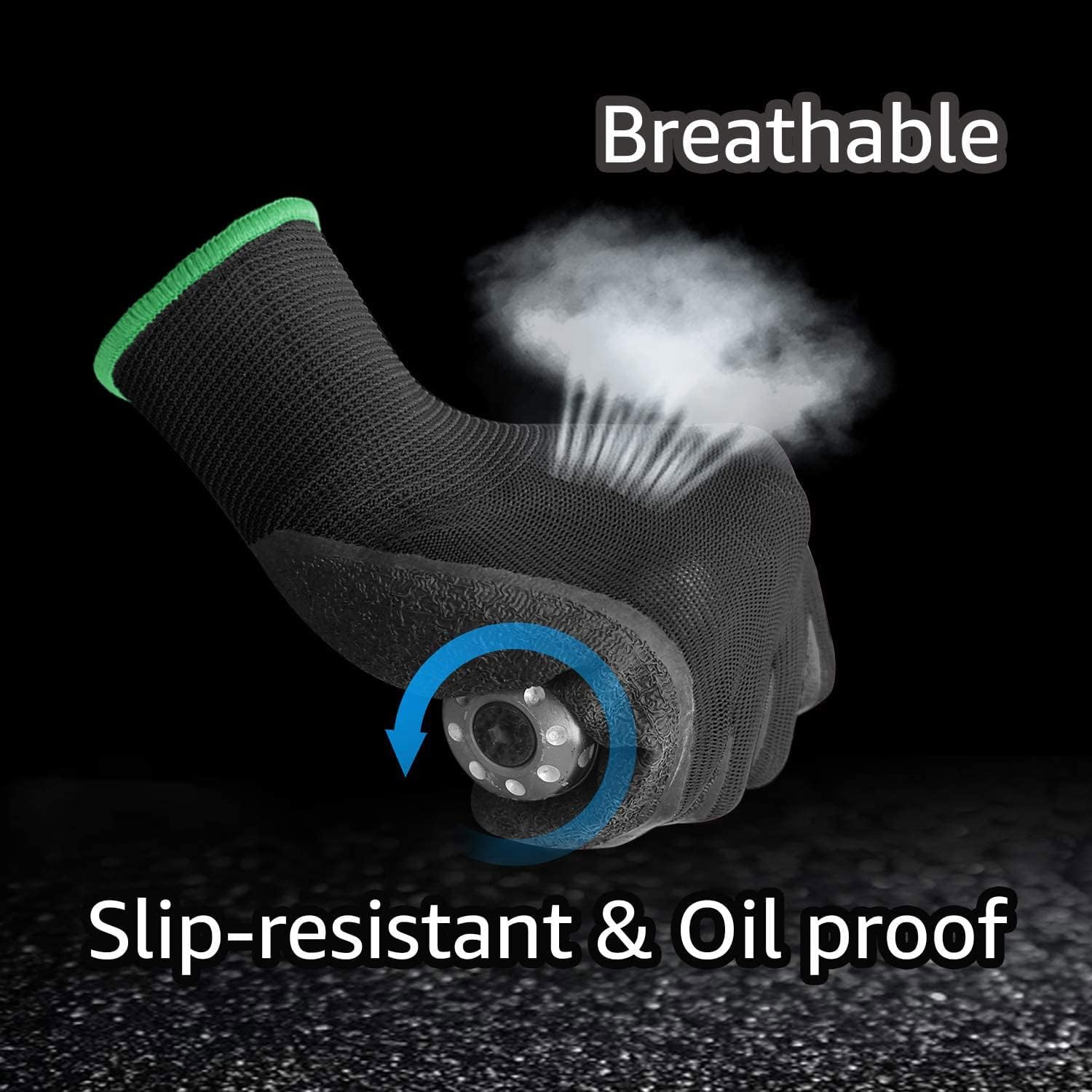 - TEXTURED COATING: Latex/rubber palm and finger crinkle coating, provides Anti-slip, Cut and Puncture resistant and repels light liquids.