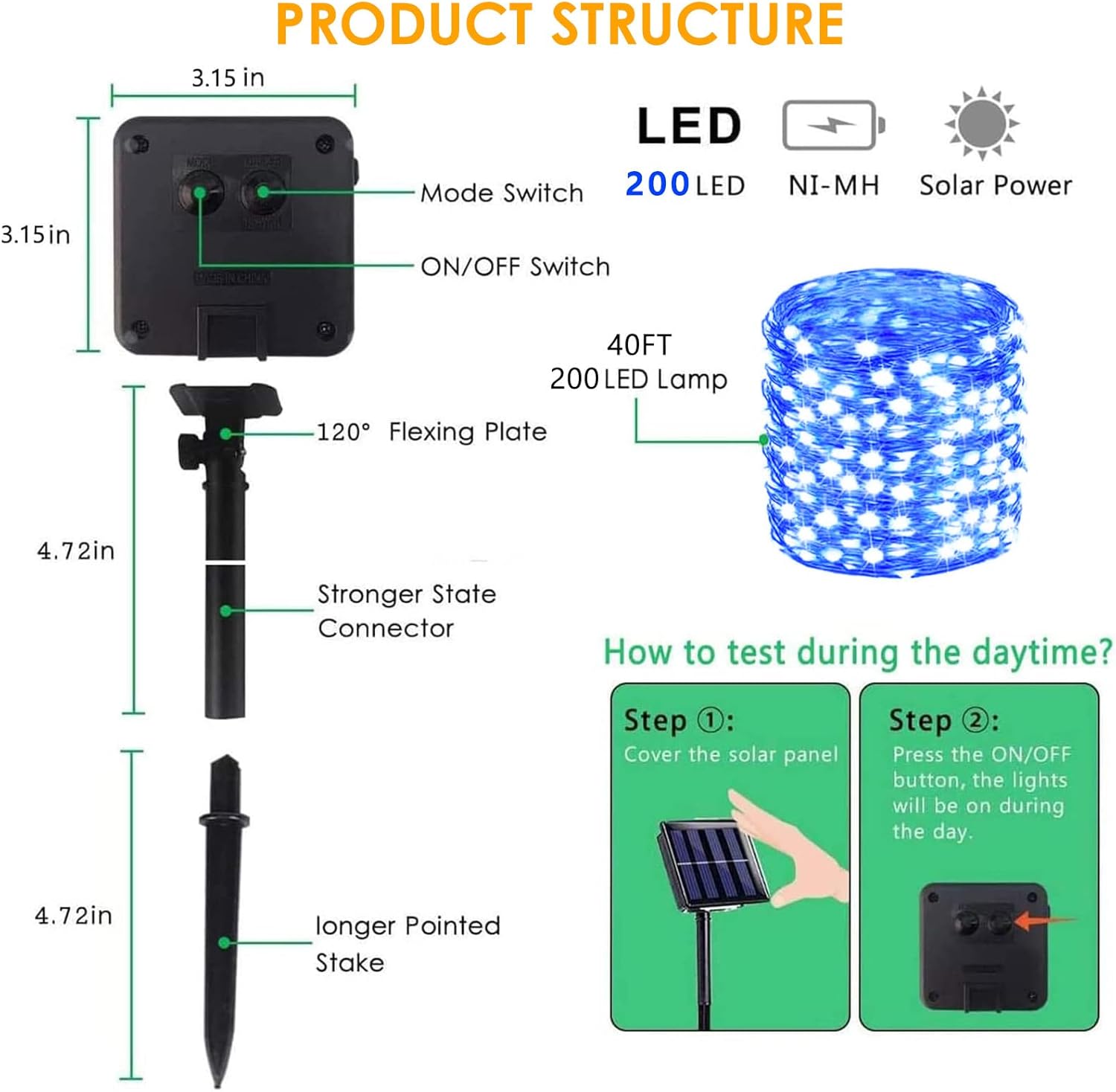 - [Widely Used Solar Fairy Lights Outdoor]: Perfect for Christmas decor, garden lighting, party decorations, wedding lights, patio, backyard, fence, porch, tree, roof, and more. These blue solar fairy lights bring a vibrant glow to both indoor and outdoor spaces, ideal for any occasion.