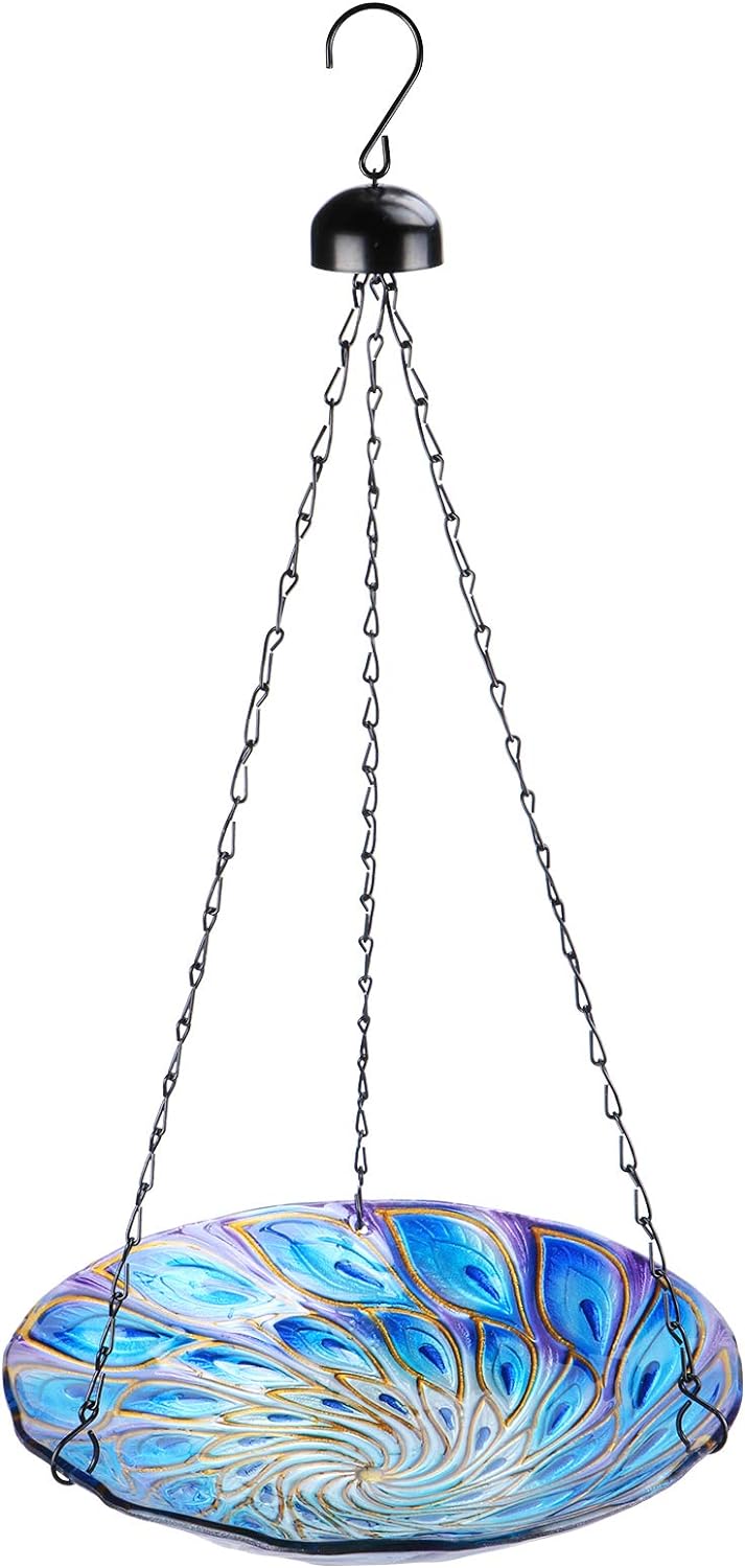 VCUTEKA Hanging Bird Baths Outdoor Glass Peacock Birdbath Birdfeeder for Garden Yard Decoration