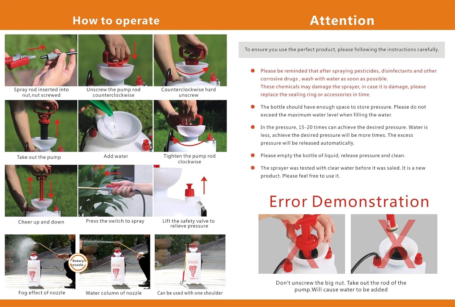 - EASY FILLING - Funnel top opening allows for easy no-mess filling. Simply unscrew, fill up the bottle, and close the lid. Pump up the pressure and you are ready to go! Our sprayer can be used with water & non viscous water based or liquid soluble products.