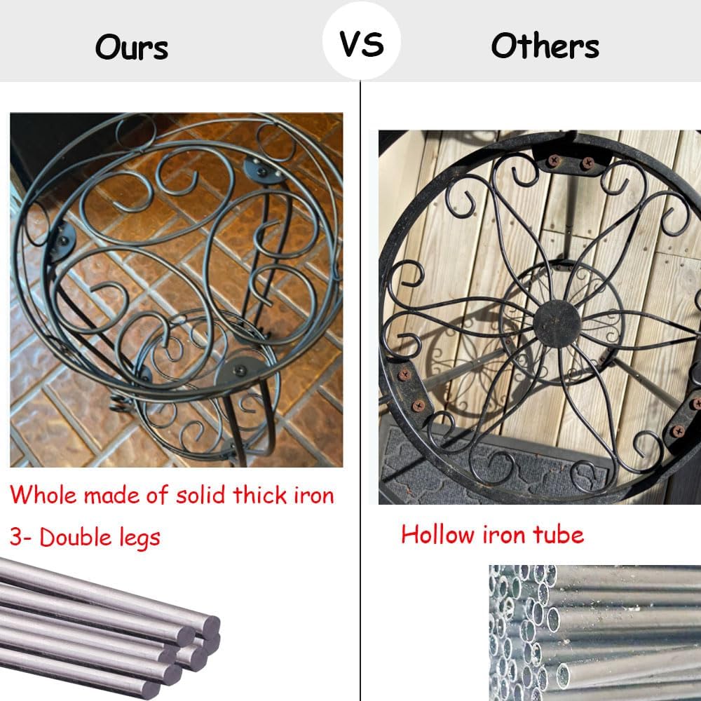 - HEAVY DUTY】:This plant holder is made of high quality,thick,sturdy SOLID iron steel.NOT HOLLOW IRON PIPE.Total net weight is 7.94 lbs. Can holds a plant in a heavy ceramic pot.Easily hold 100 or more lbs.