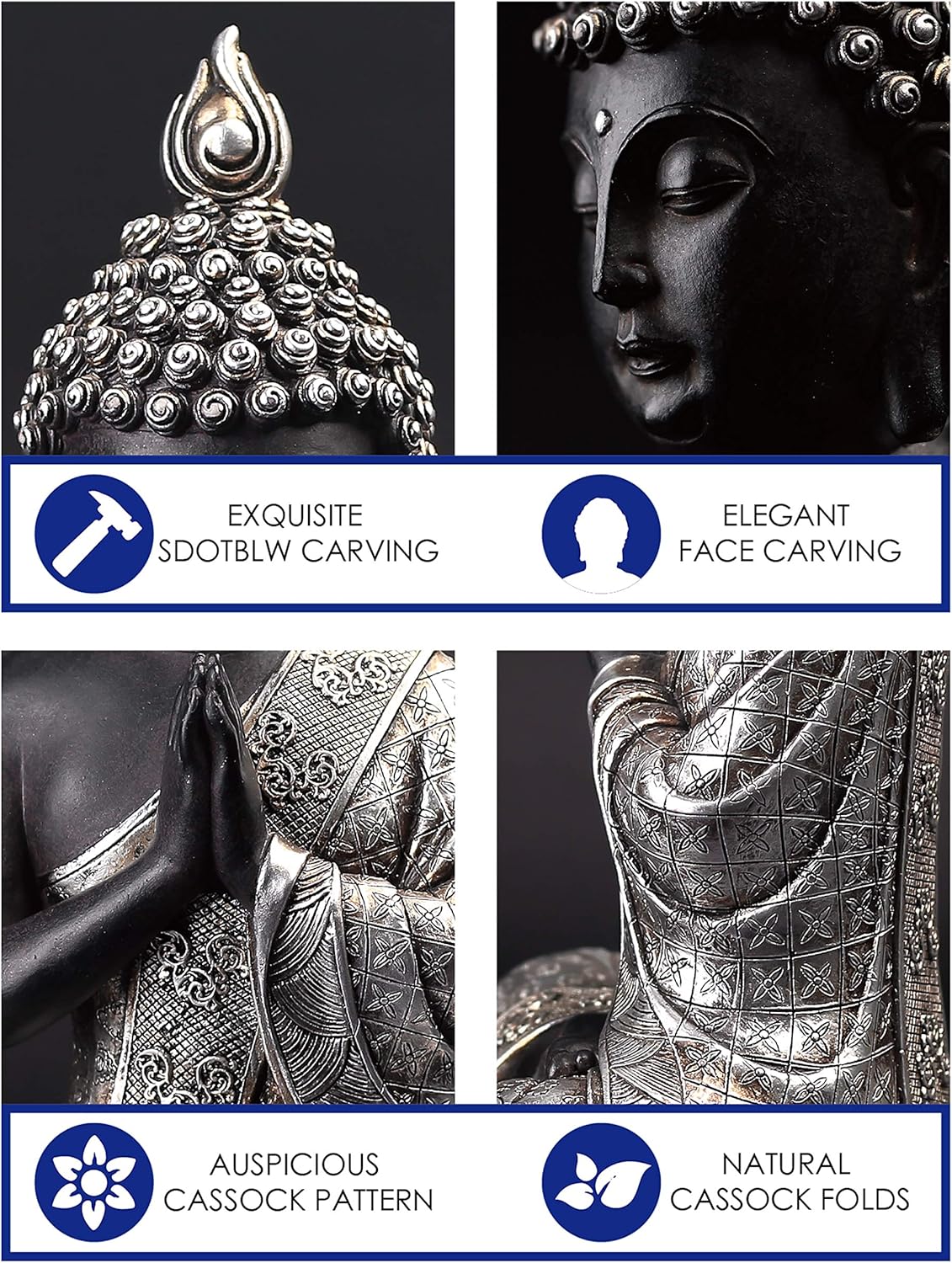 JORAE Seated Buddha Statue Buddhism Thai Meditating Home and Garden Decorative Sculpture Praying Collectibles Figurines, 9.5 in, Polyresin