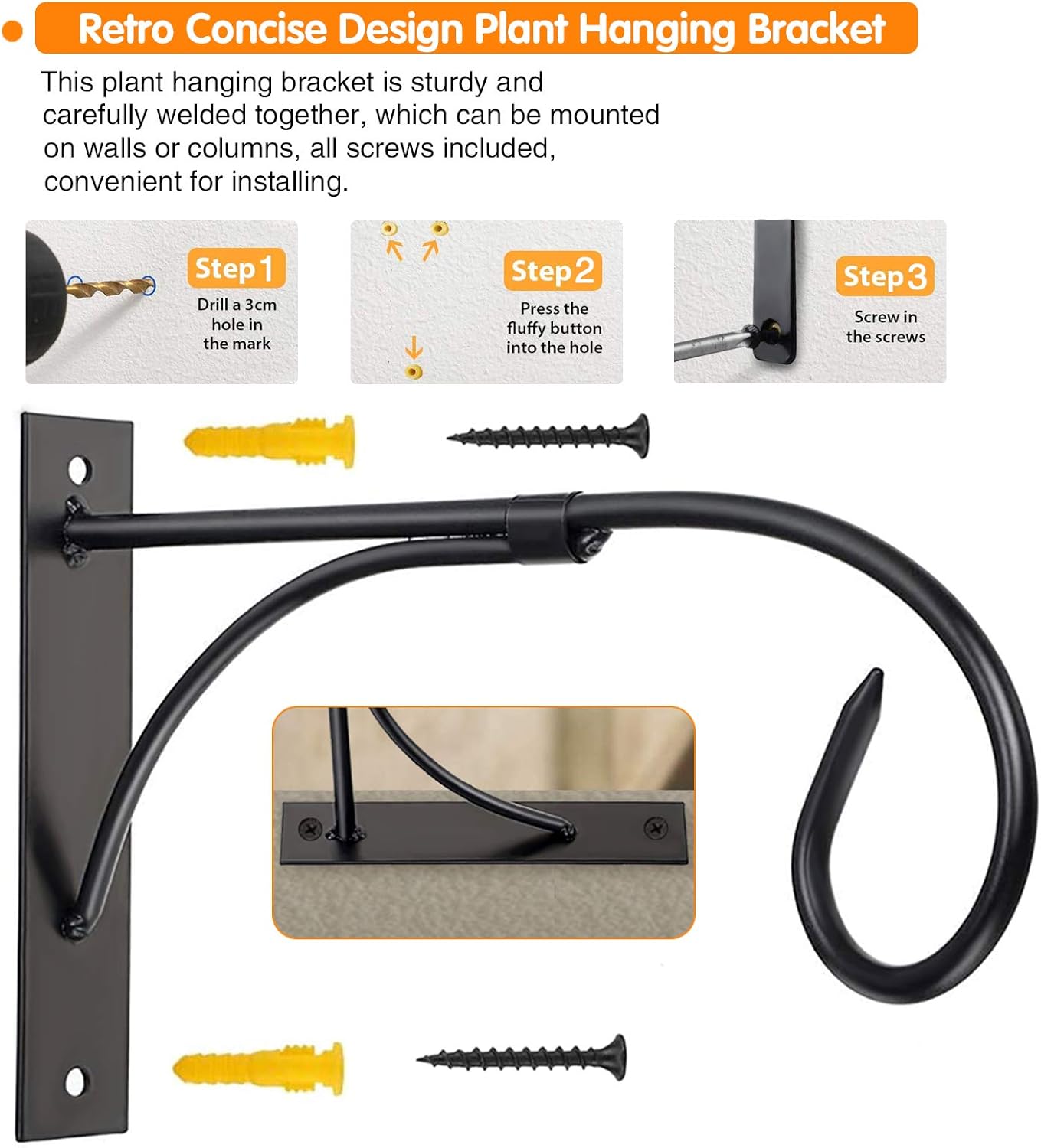 - 🌸Quality Plant Hangers Outdoor: There are enough reasons why you will love these plant hooks. Our beautiful plant hanger bracket has been made of high tensile iron, making it stable and durable, the elegant black lines are hypnotically classy, the maximum load is 60 lbs, the eco-friendly black vinyl coating makes the rust-resistant solution great.
