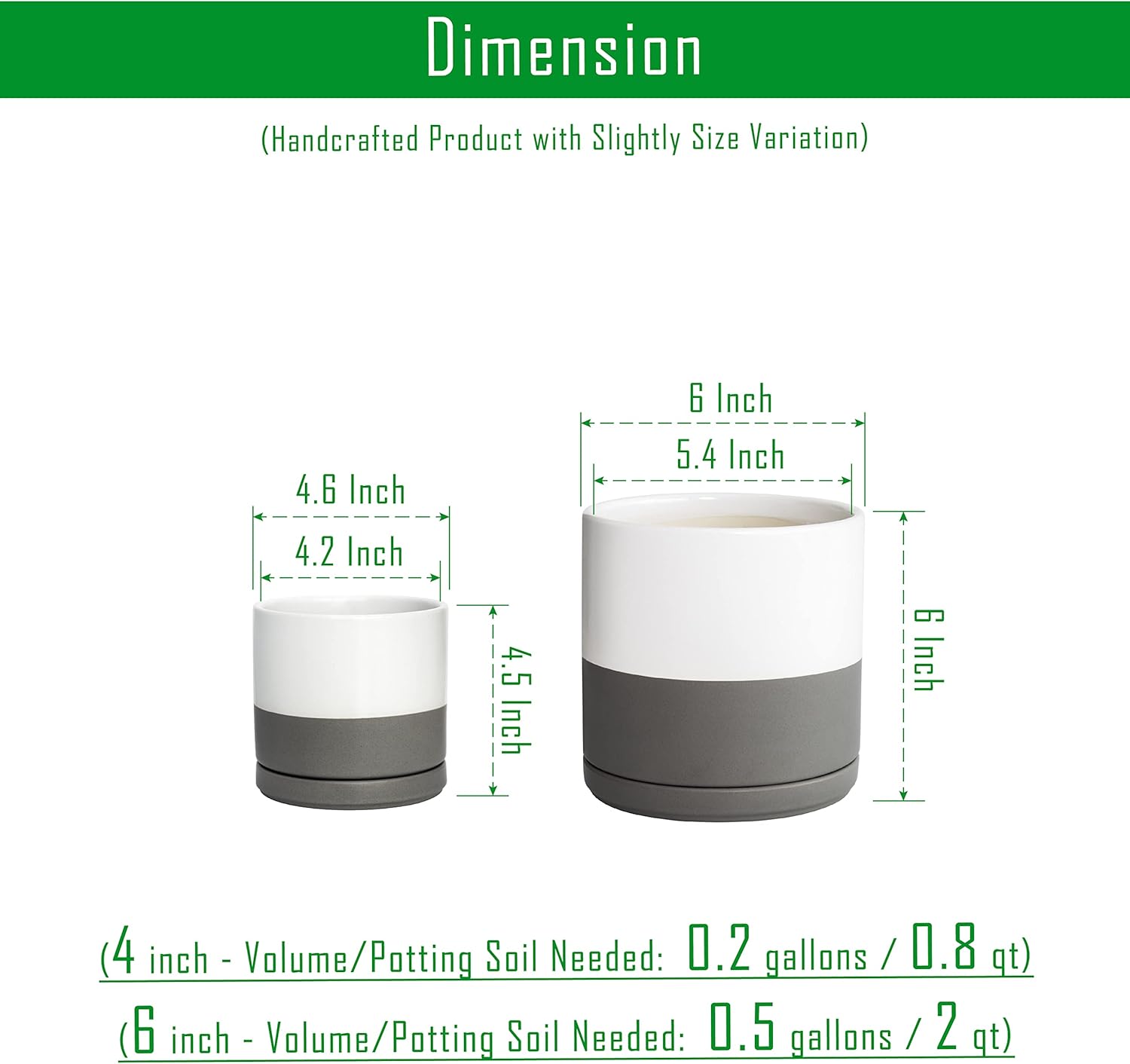 - Small Set of 2 Plant Pots Dimensions: 4.6" Diameter (4.2" Inner Diameter) * 4.5" Height; 6" Diameter (5.4" Inner Diameter) * 6" Height. Potting Soil Needed: 4-inch 0.8 qt; 6-inch 2 qt.
