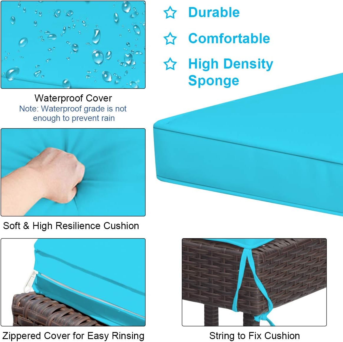 Tangkula Patio Bar Set, 3 Piece Outdoor Rattan Wicker Bar Set with 2 Cushions Stools & Glass Top Table, Outdoor Furniture Set for Patios Backyards Porches Gardens Poolside (Turquoise)