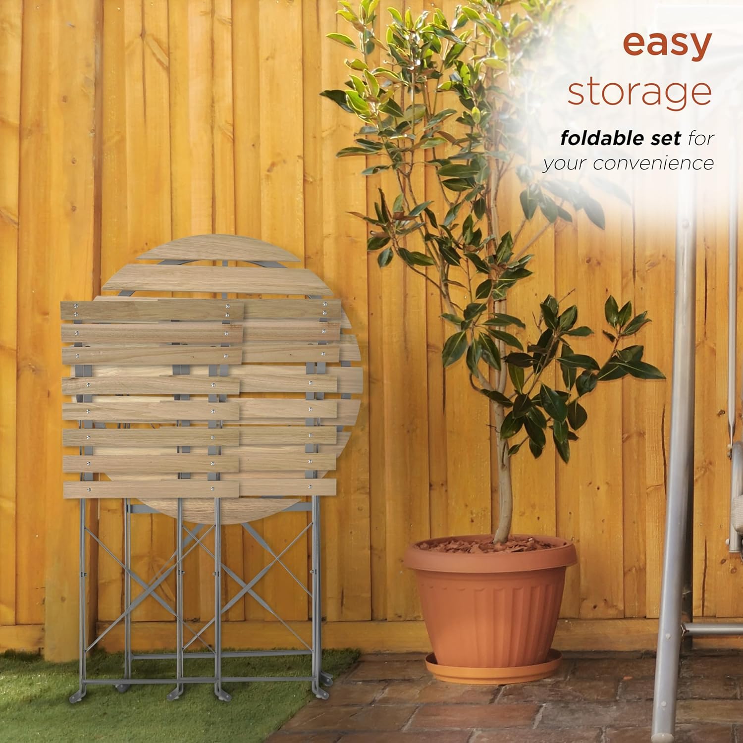 - CLASSIC PATIO SEATING SET: Table and 2 chairs bistro set with a classic and versatile wood slat design provides convenient and stylish seating to your indoor or outdoor living space or yard