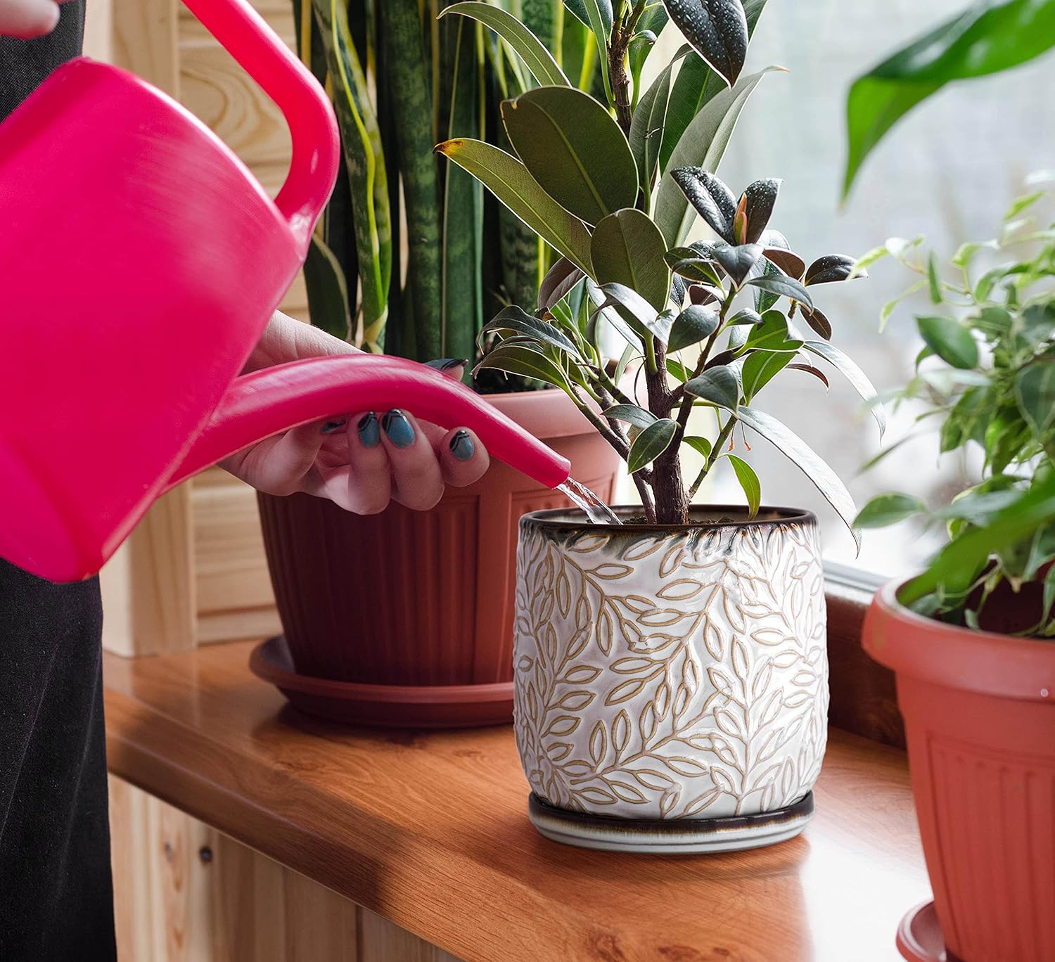- Drainage: Pre-drilled drainage hole and matching saucer to prevent soil from overflowing
