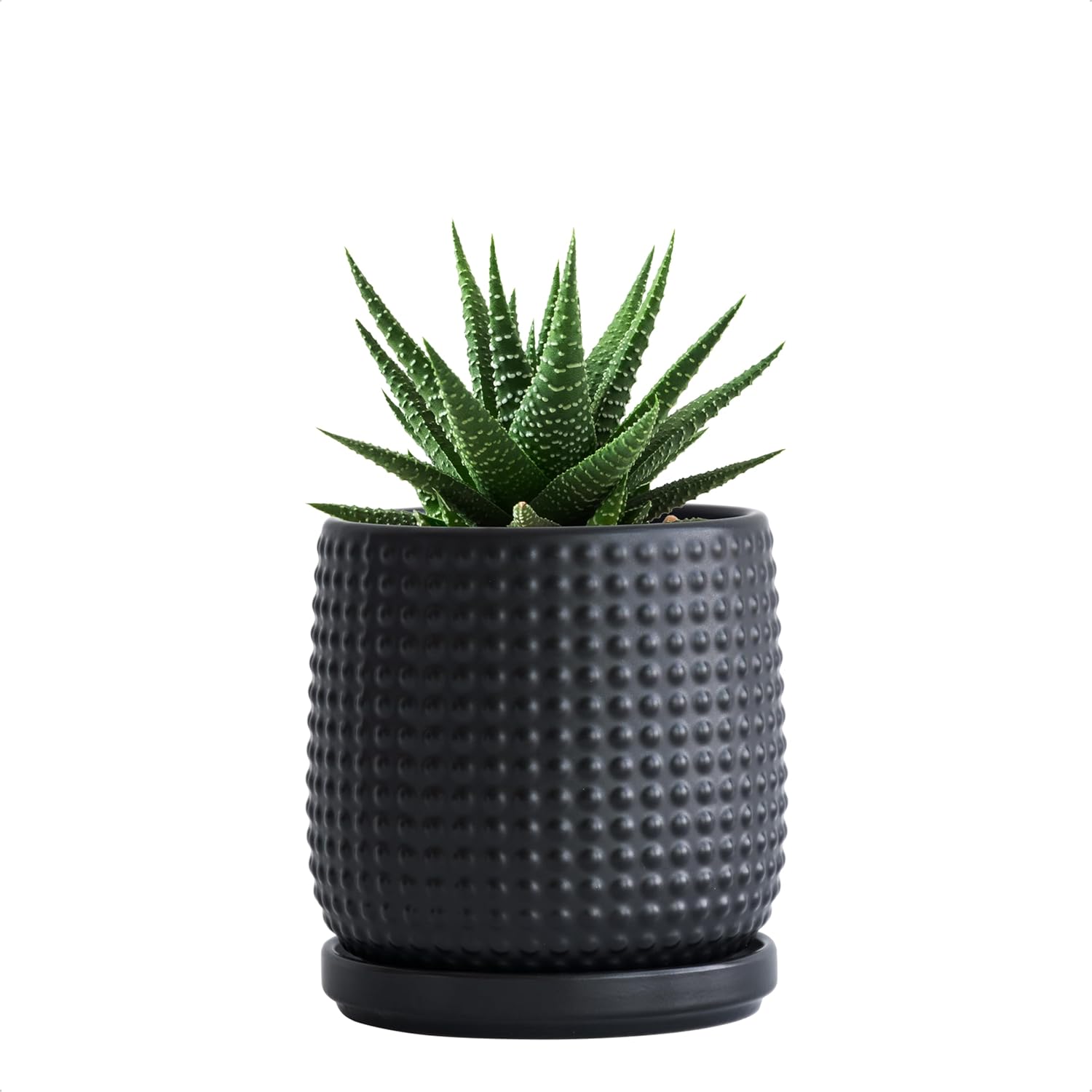 D'vine Dev 4 Inch Ceramic Beaded Stoneware Planter Pot - Flower Pot with Drainage Holes and Saucers for Indoor Succulent Plants or Flowers, Ebony Matte, 27-C-Z-6