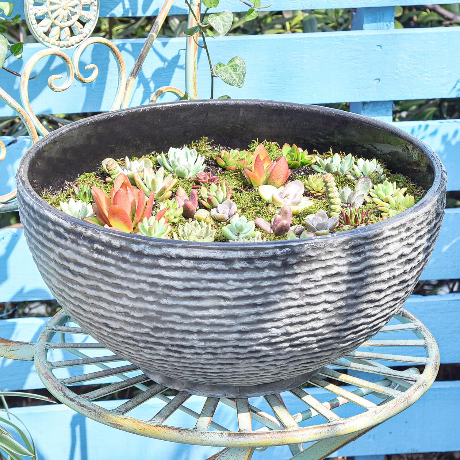 Sungmor Ash Black Resin Outdoor Low Bowl Planter Bird Bath 15.6 Inch Water Lily Succulent Pots Small Fountain Base