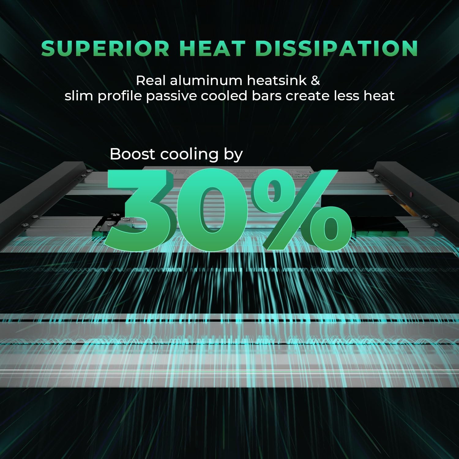 - SUPERIOR HEAT DISSIPATION: The the Aluminum heatsink with slim profile bars reduce heat keeping your growing space at the perfect temperature; real Aluminum heatsink & 4 slim profile passive cooled bars (THINNER & LARGER surface) creat less heat, drop 50% in electricity bill than HID lights!