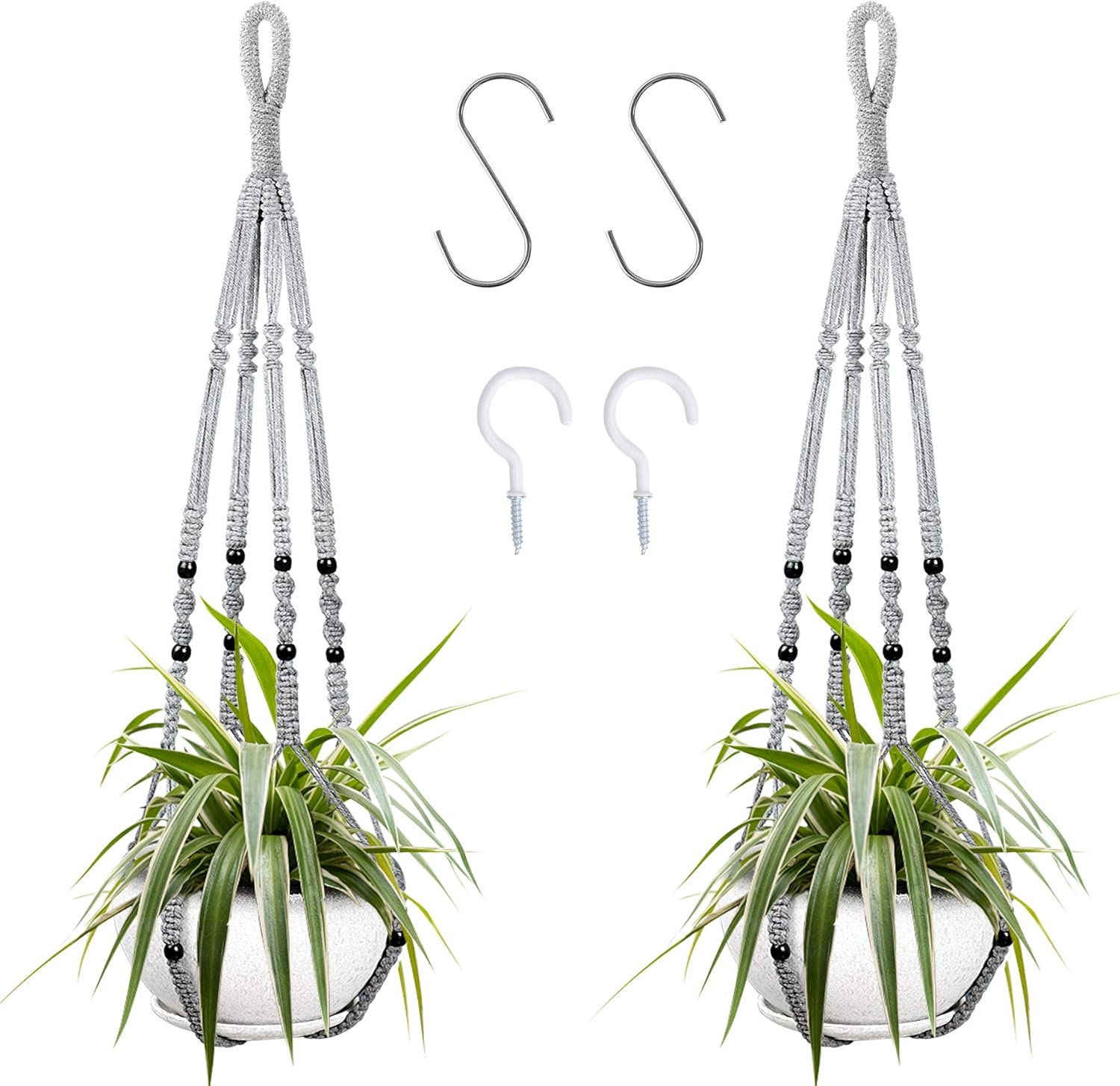 Augshy 2 Packs Macrame Hanging Planter, Indoor Hanging Planter Basket with Wood Beads Decorative Macrame Pot Hanger for Home Decor (Grey)