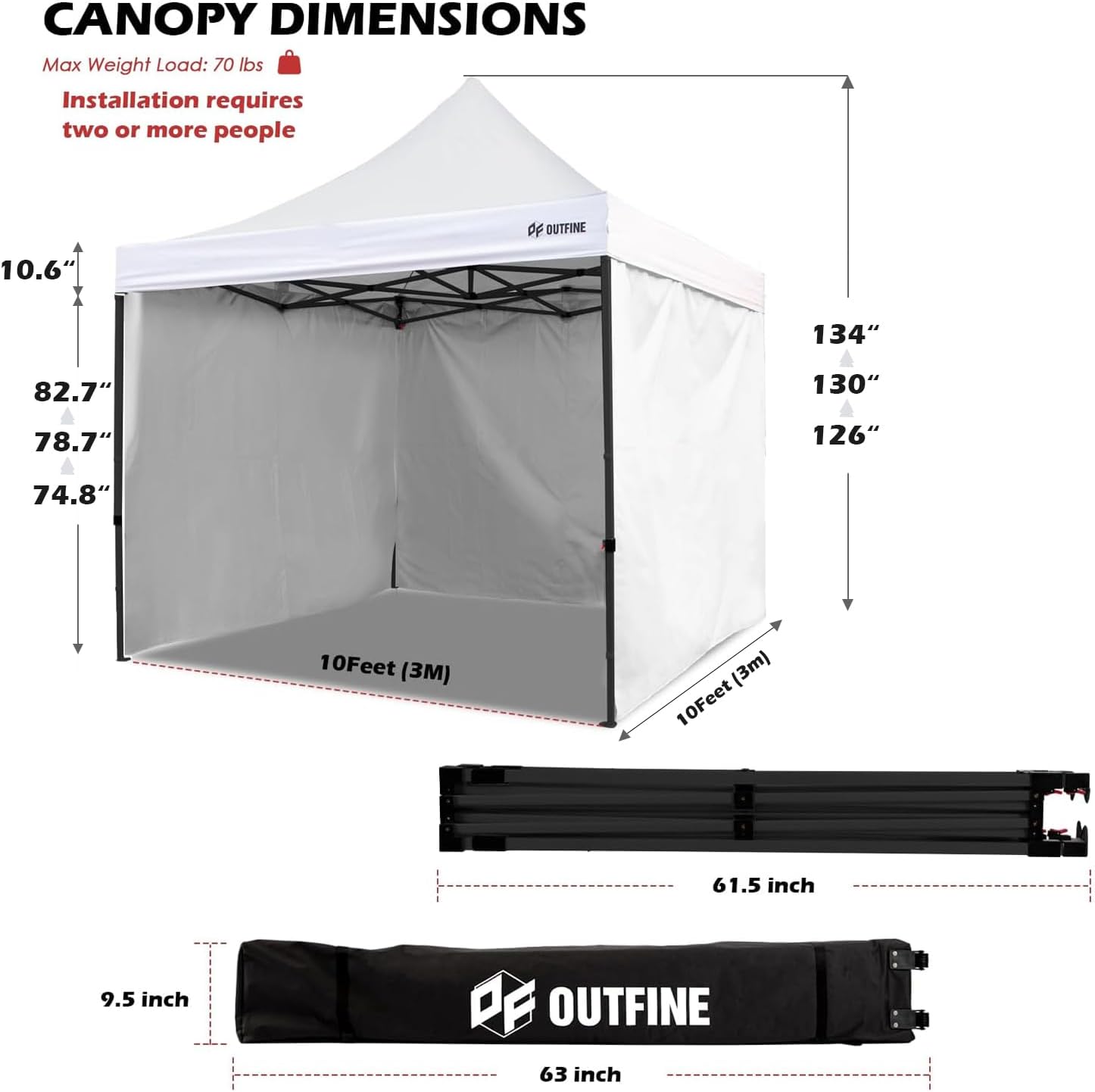 - EASY TO ASSEMBLE - Only two people are required to easily complete the entire assembly in a few minutes. Take out the canopy frame and top tarpaulin from the bag, place it on ground and unfold it, place the tarpaulin over the frame, then pull it to each corner end fully and extend the legs and it is done. Three different height settings allow you to pick the height which you want, 89.3 inch, 93.7 inch and 97.2 inch. Thumb latch lock system easy to lock and release.