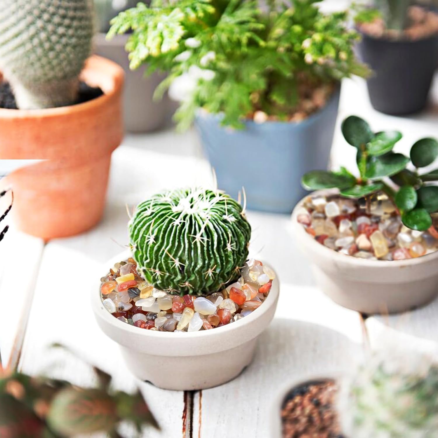 • 【Plants & Flowers Decoration】: Nice for bonsai, succulents and flowers, which not only can decorate them well, but also can retain moisture, keep the soil from splashing during watering amd make you succulent plants or other plants stand out more