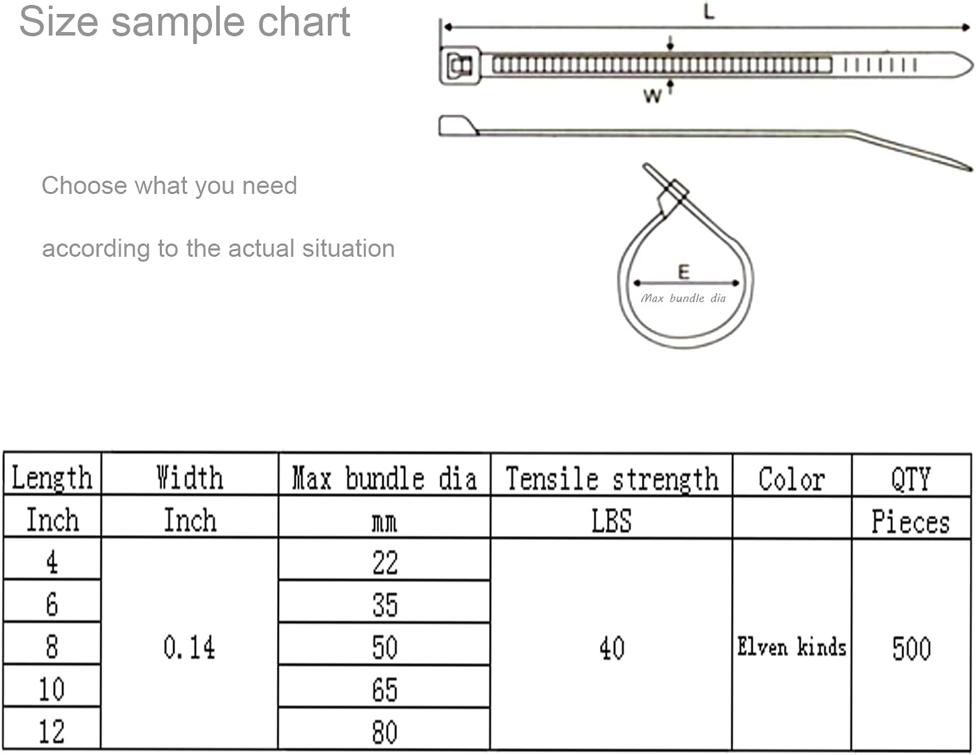 - ★【Great Design】Self-locking fastener design, sturdy and durable, easy to operate. The width of our cable tie is 0.14 inch/3.6 mm, which makes the cable tie stronger than the same size cable tie on the market and tensile strength could handles most purpose of binding in life.