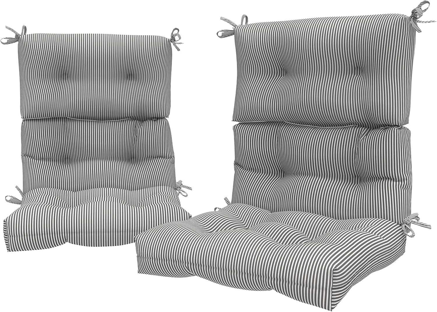 LVTXIII Outdoor 44x22-inch High Back Chair Cushions, Patio Solid Tufted Adirondack Chair Seat Cushions, Seasonal Replacement Rocking Chair Cushion with Ties, Set of 2, Strip Grey