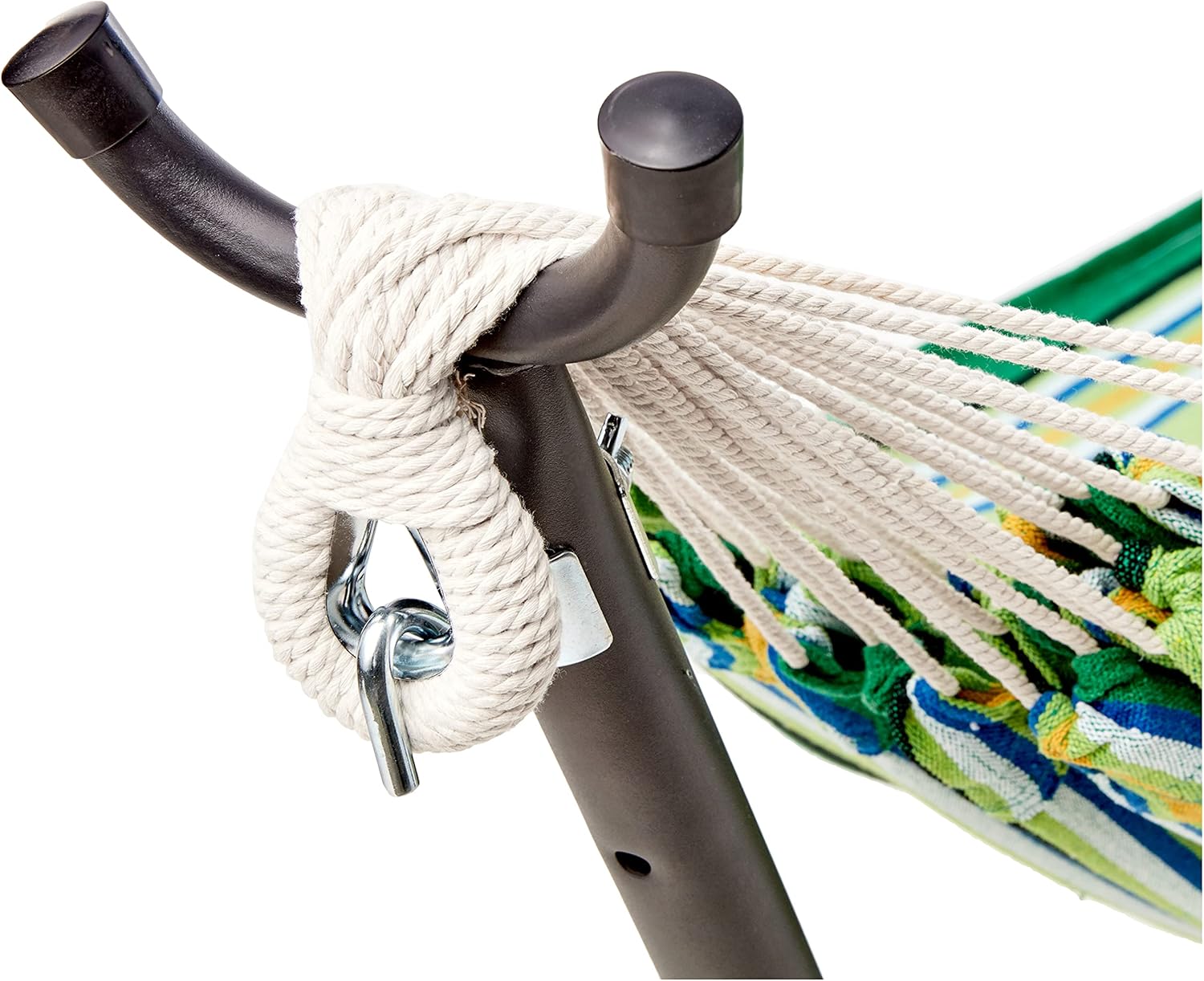Amazon Basics Double Hammock with 9-Foot Space Saving Steel Stand and Carrying Case, 450 lb Capacity, Vigor Green, 110x47x43 inches