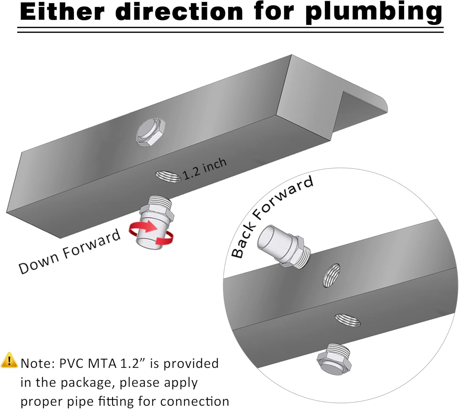 • Heavy-duty Materials and Excellent design - The main body of the spillway is welded together by 304 stainless steel, which is more stable for long-term use. The open design not only makes the water flow more smoothly but also makes it easier to clean.