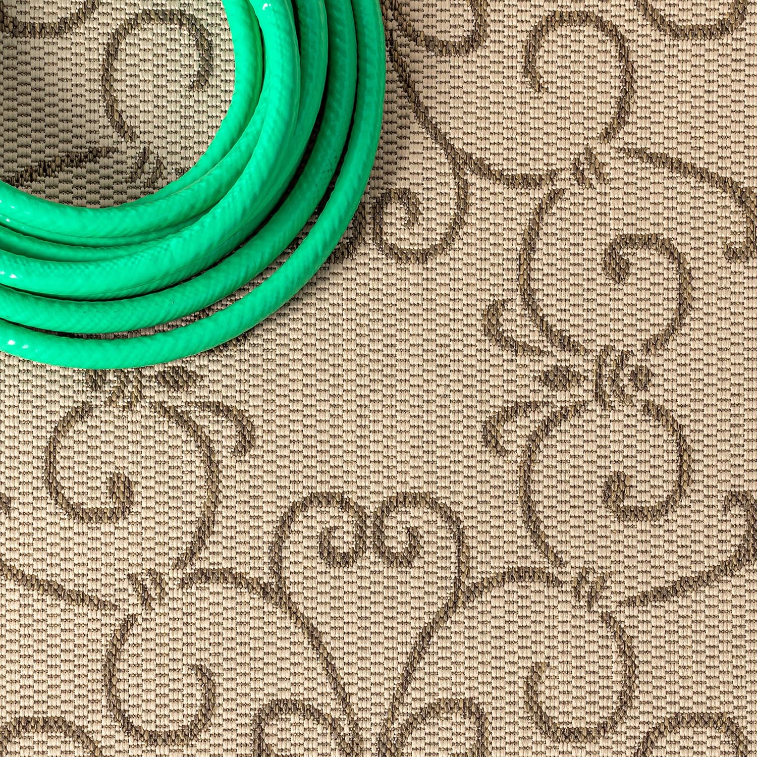 JONATHAN Y SMB106A-210 Charleston Vintage Filigree Textured Weave Indoor Outdoor Runner Rug Classic Coastal Easy-Cleaning Bedroom Kitchen Backyard Patio Non Shedding, 2 X 10, Beige/Brown