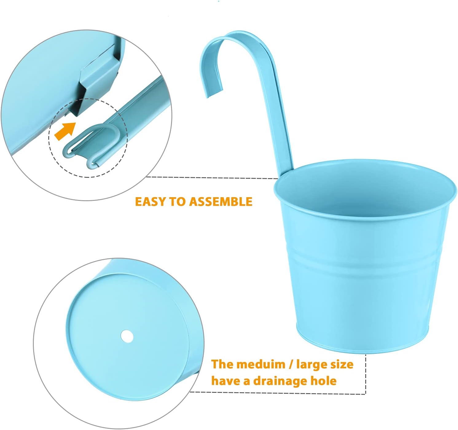 - Plant Pots with Drainage Holes: 4 inches, 5 inches and 6 inches railing planters are available to meet your different needs. With drainage hole in the bottom that moisture can run out, help your plants grow healthily.