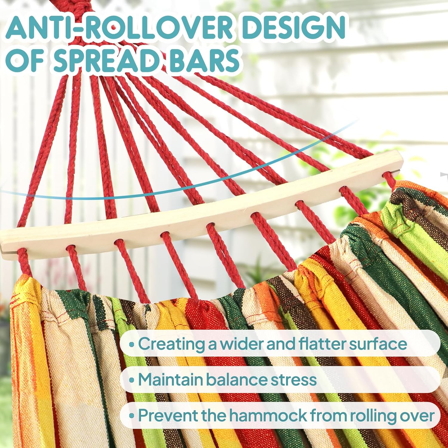 Anyoo Garden Cotton Hammock Comfortable Fabric Hammock with Spreader Bar Sturdy Hammocks Up to 450lbs Portable Lightweight Hammocks with Travel Bag for Camping Outdoor/Indoor Patio Backyard