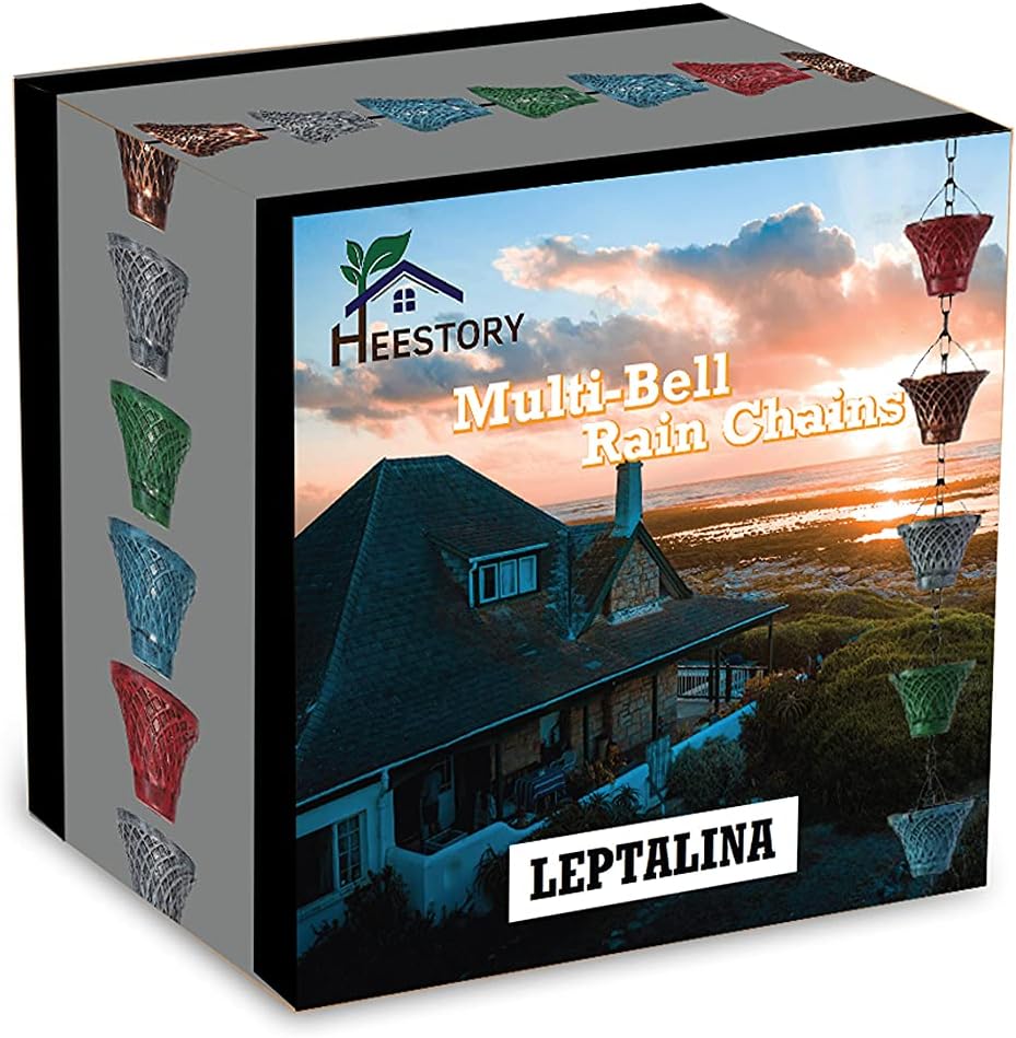 - ANTIQUE DESIGN: Our rain chain is painted in 5 antique colors (Copper, Sky blue, Gray, Red, and Green) to complement your roof and garden decor. The 5.8-foot chain is easy to adjust by adding or removing cups or links.