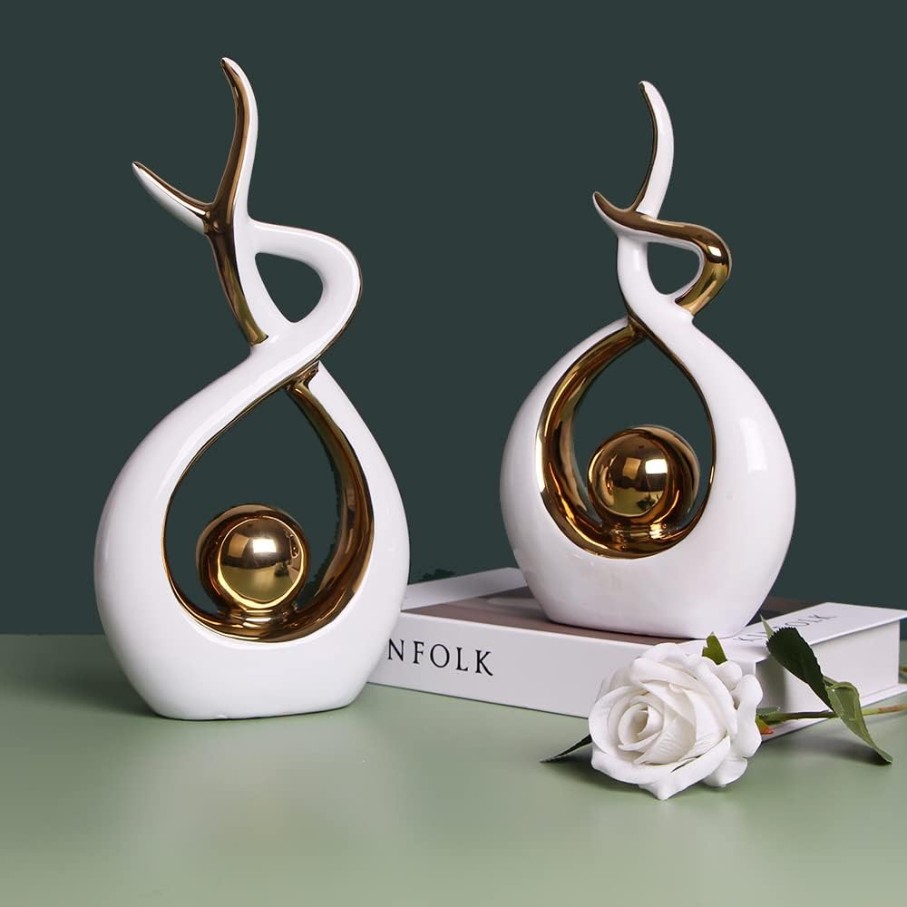Norrclp Home Decor Modern Abstract Art Ceramic Statue Table Decorations for Dining Room Living Room Office Centerpiece (White and Gold, Small)