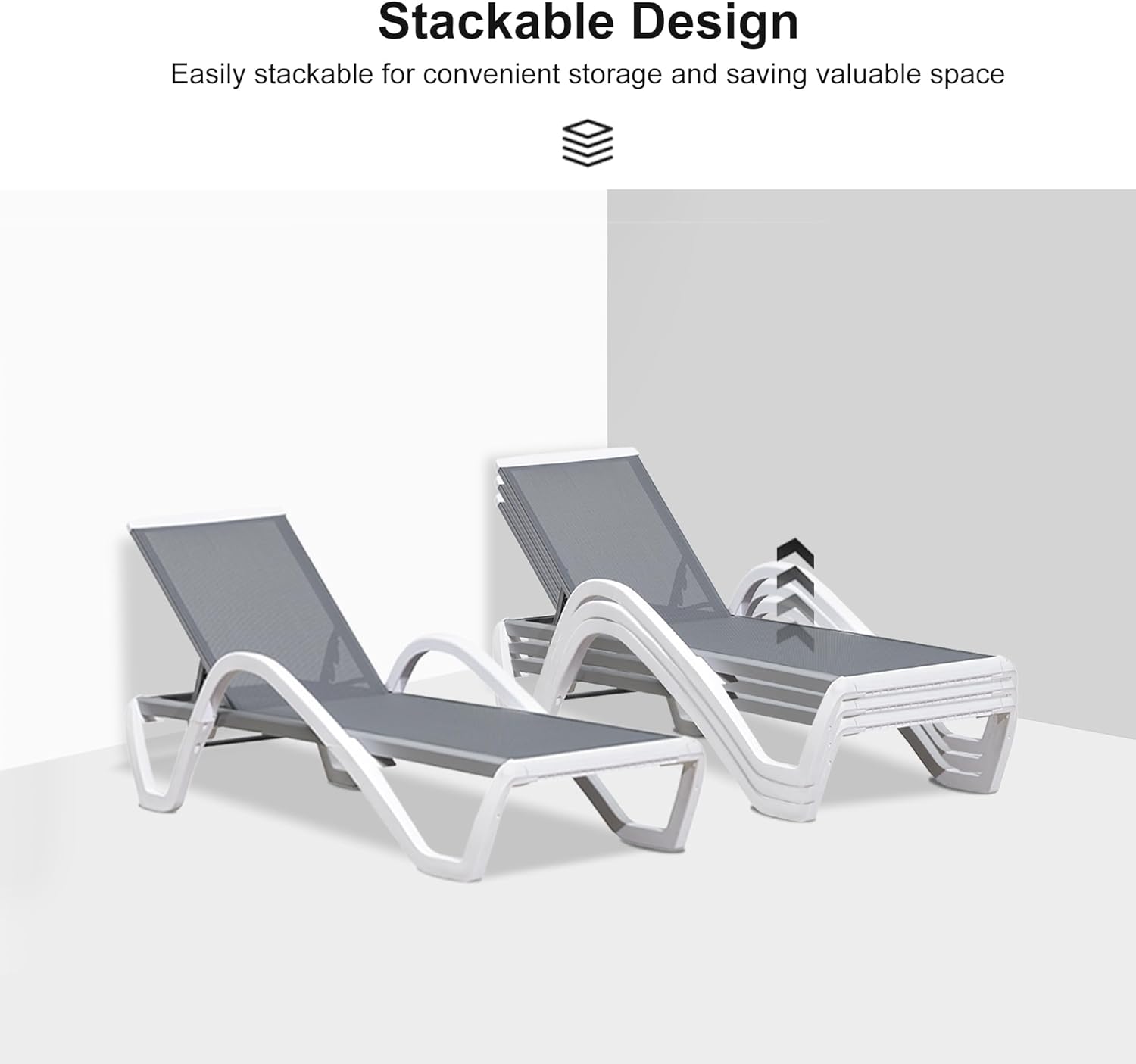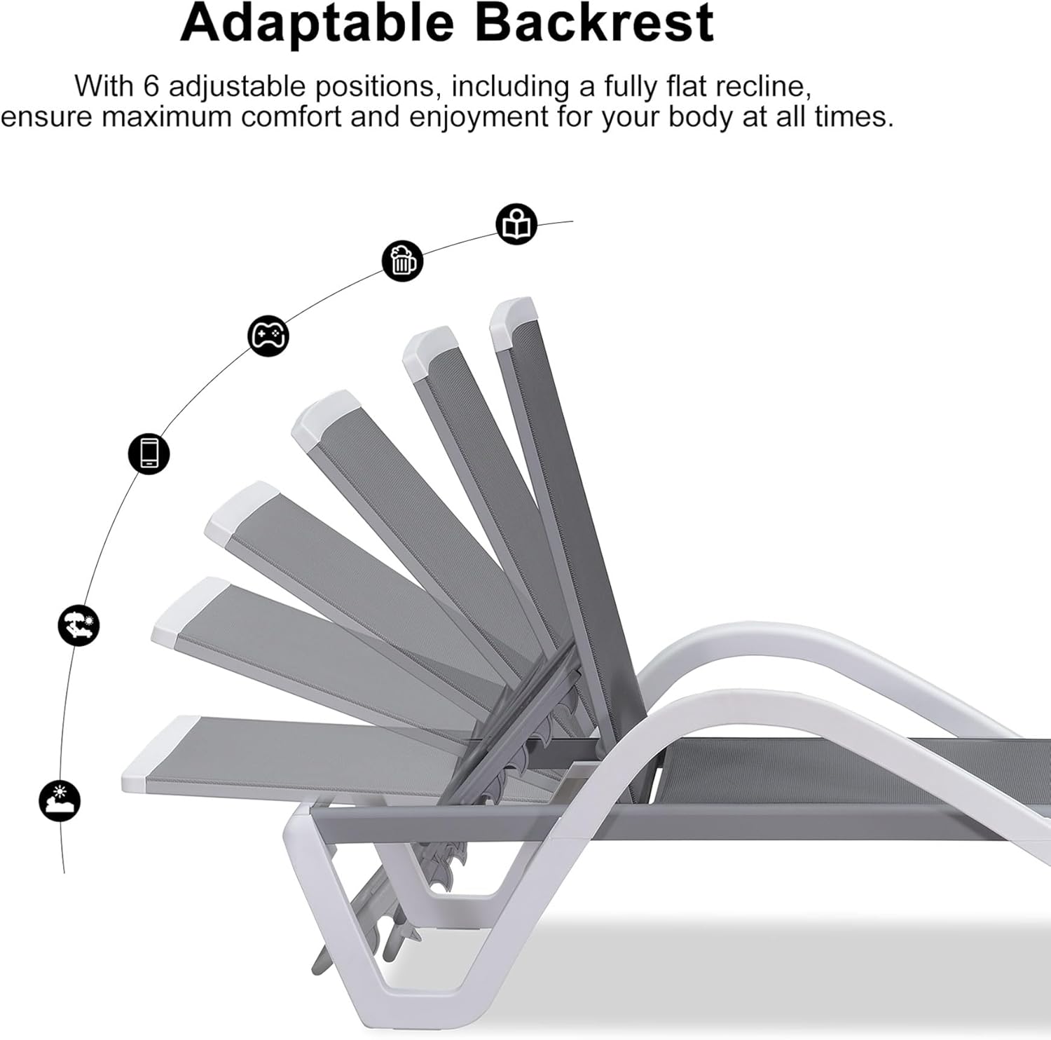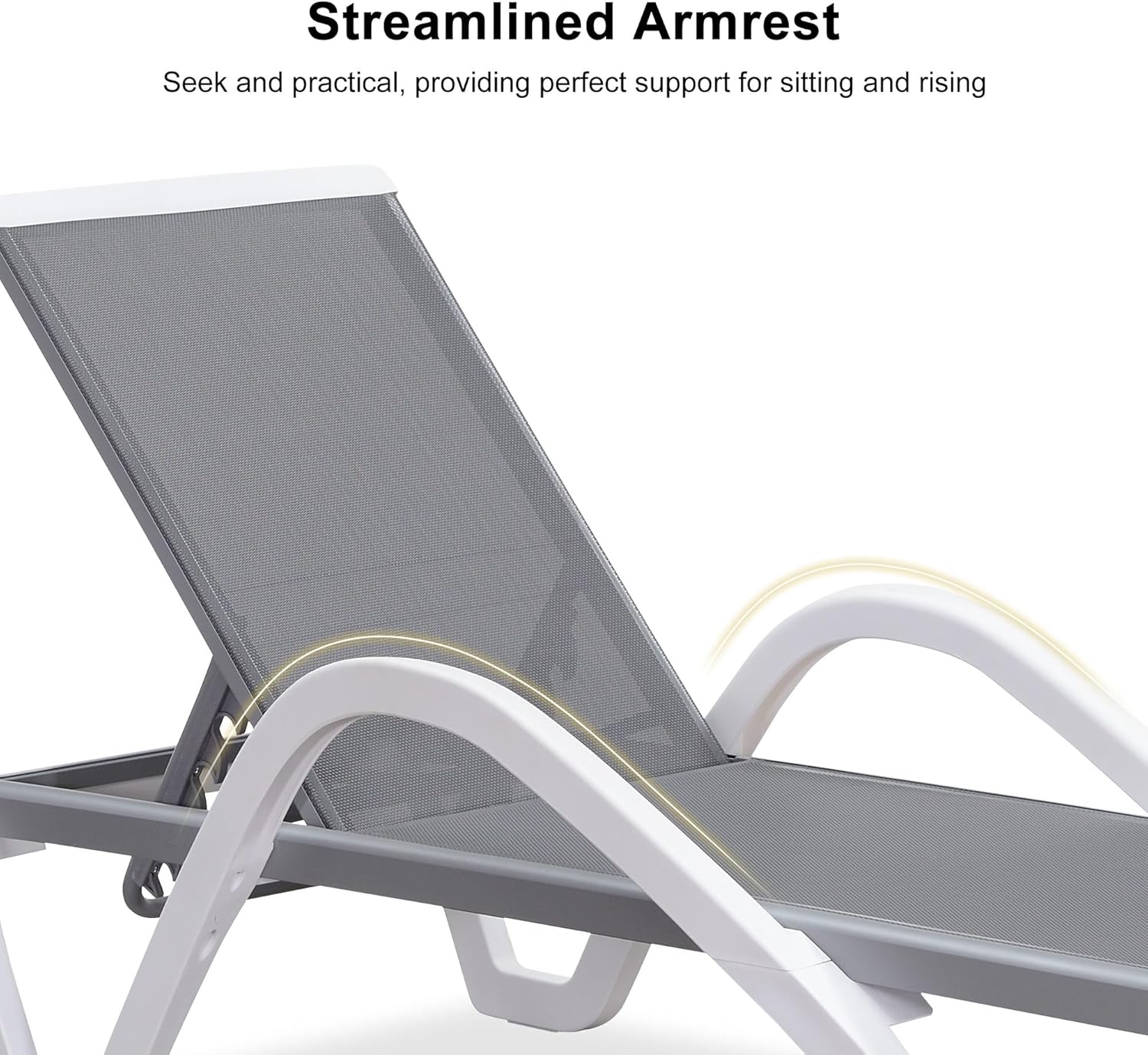 PURPLE LEAF Patio Chaise Lounge Chair Outdoor Plastic Textilene Sun Bathing Recliner Tanning Pool Lounger with 6 Adjustable Position for Outside Beach in-Pool Lawn Poolside, Gray